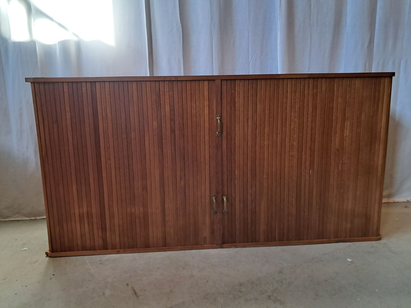 Jalousiskab i fineret egetræ, fra 1950erne.