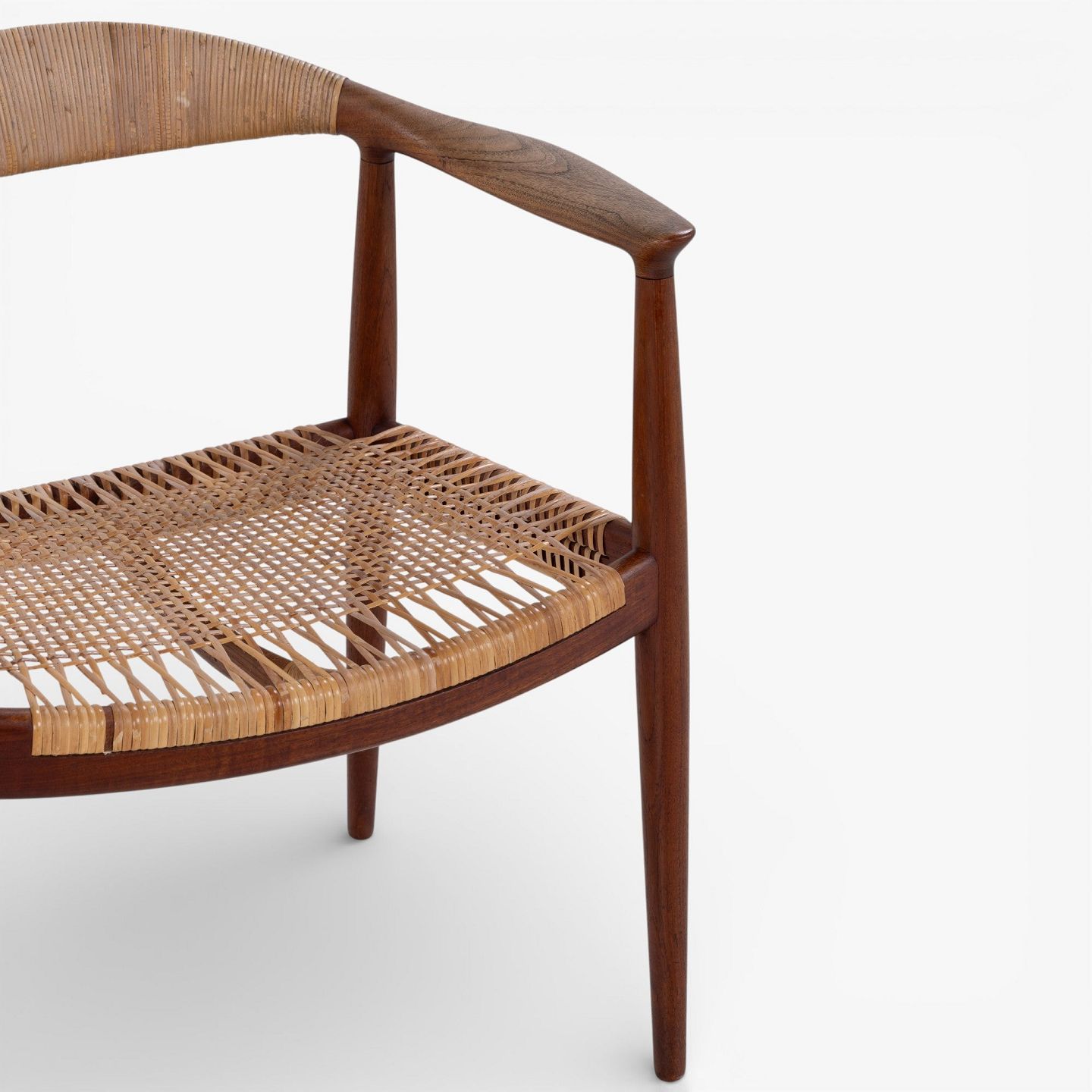 JH 501 - Sæt á 6 'The Chair'-spisestole i patineret teak med sæde og ryg i flet.