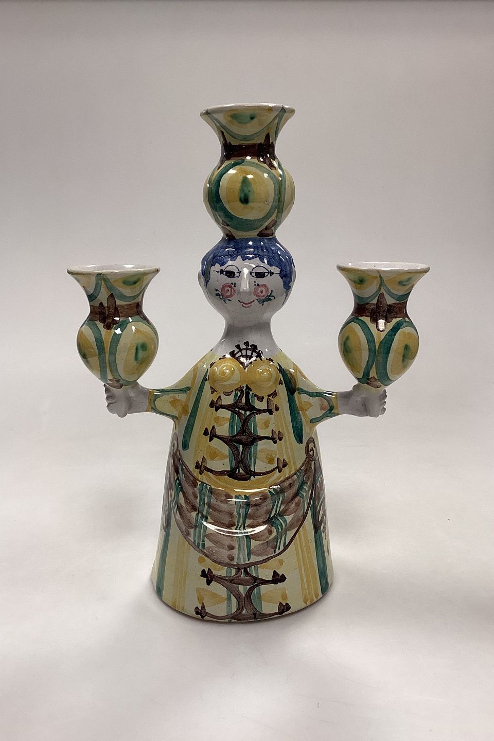 Bjørn Wiinblad Figur/Lysestage af Kvinde No. L8 fra 1969. Mulighed for 3 lys. Meget fin og intakt stand.