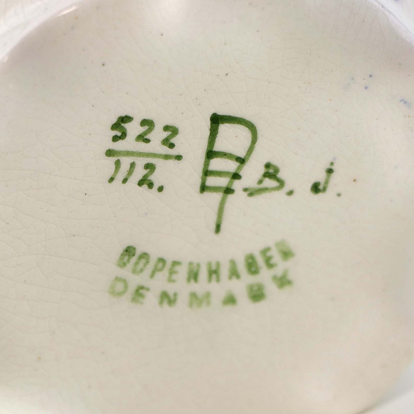 Fremstår med krakkeleringer i glasuren samt to minimale blå streger et sted under glasuren.