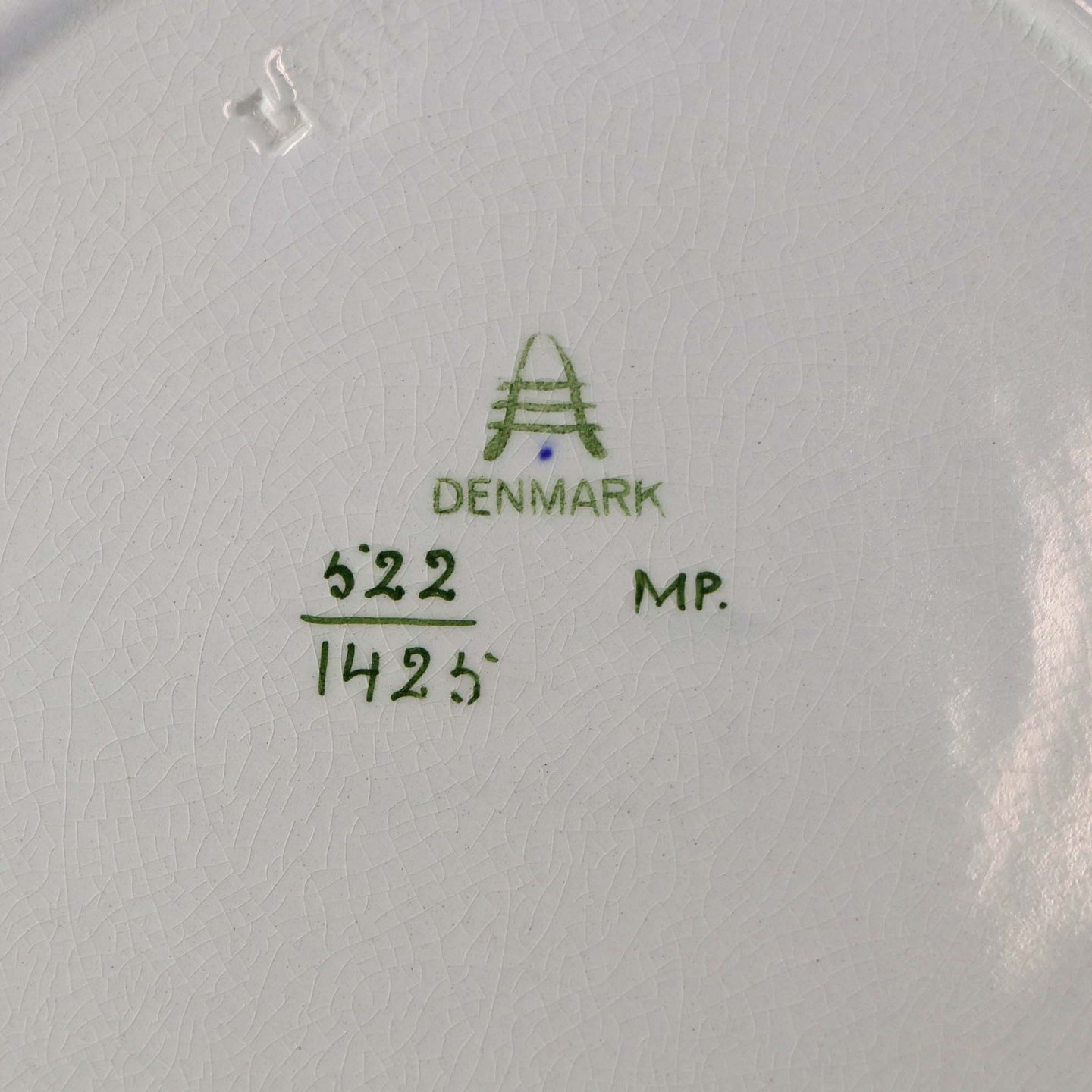 Flad frokosttallerken i fajance fra stellet Blåregn. Stellet er fremstillet i perioden år 1903-1933. Nr. 522/1425