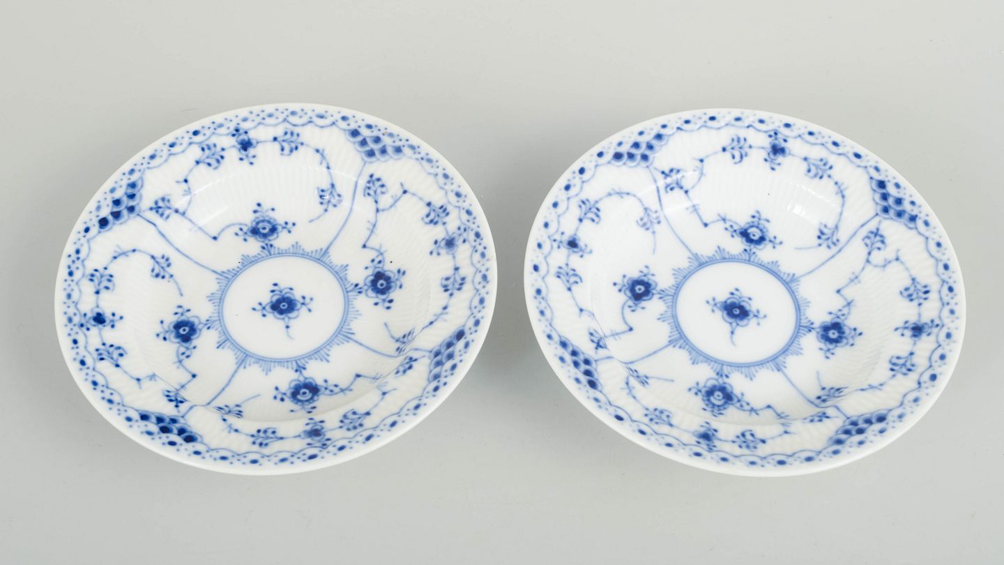 Royal Copenhagen Musselmalet Halvblonde, sæt af to små dybe tallerkener.