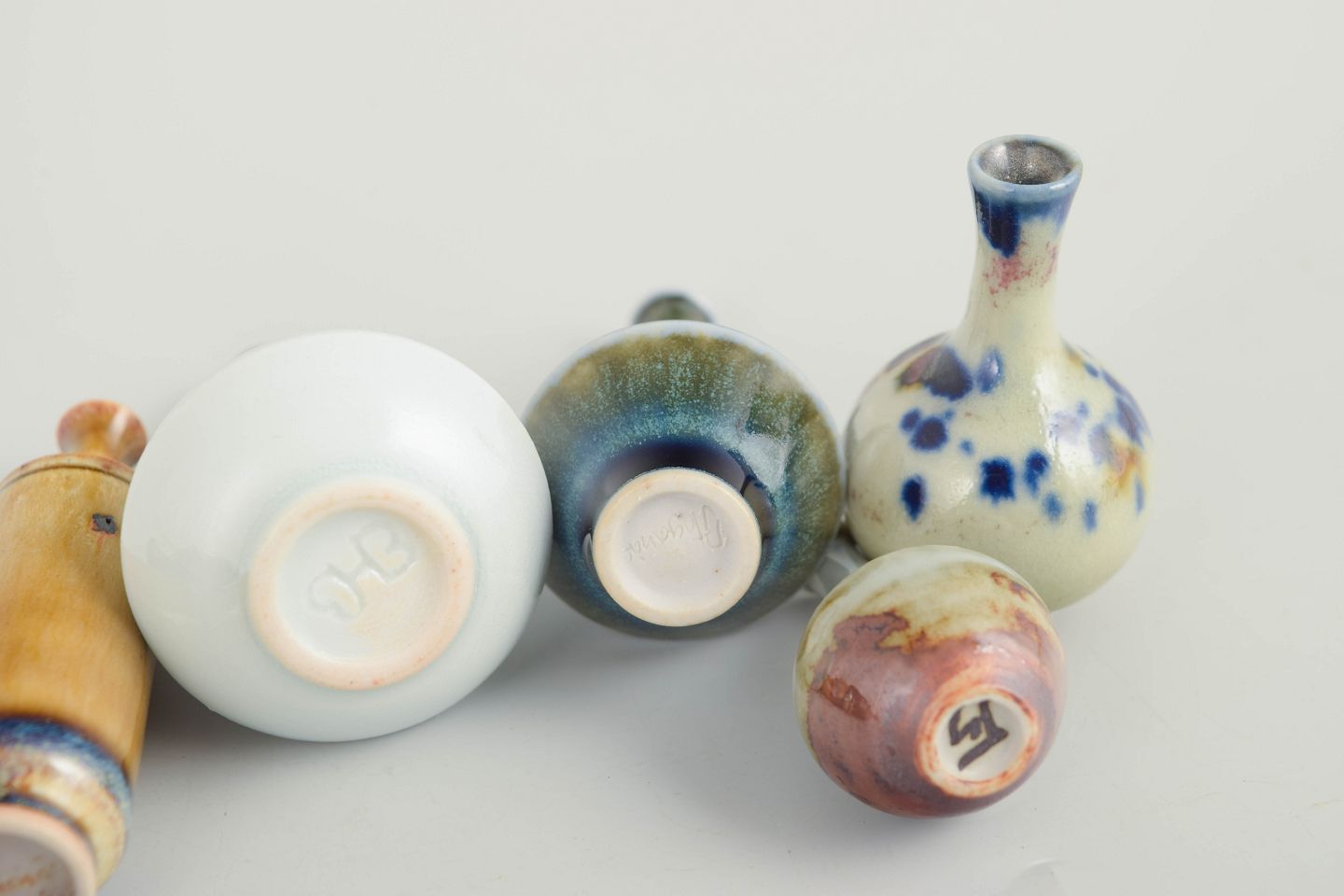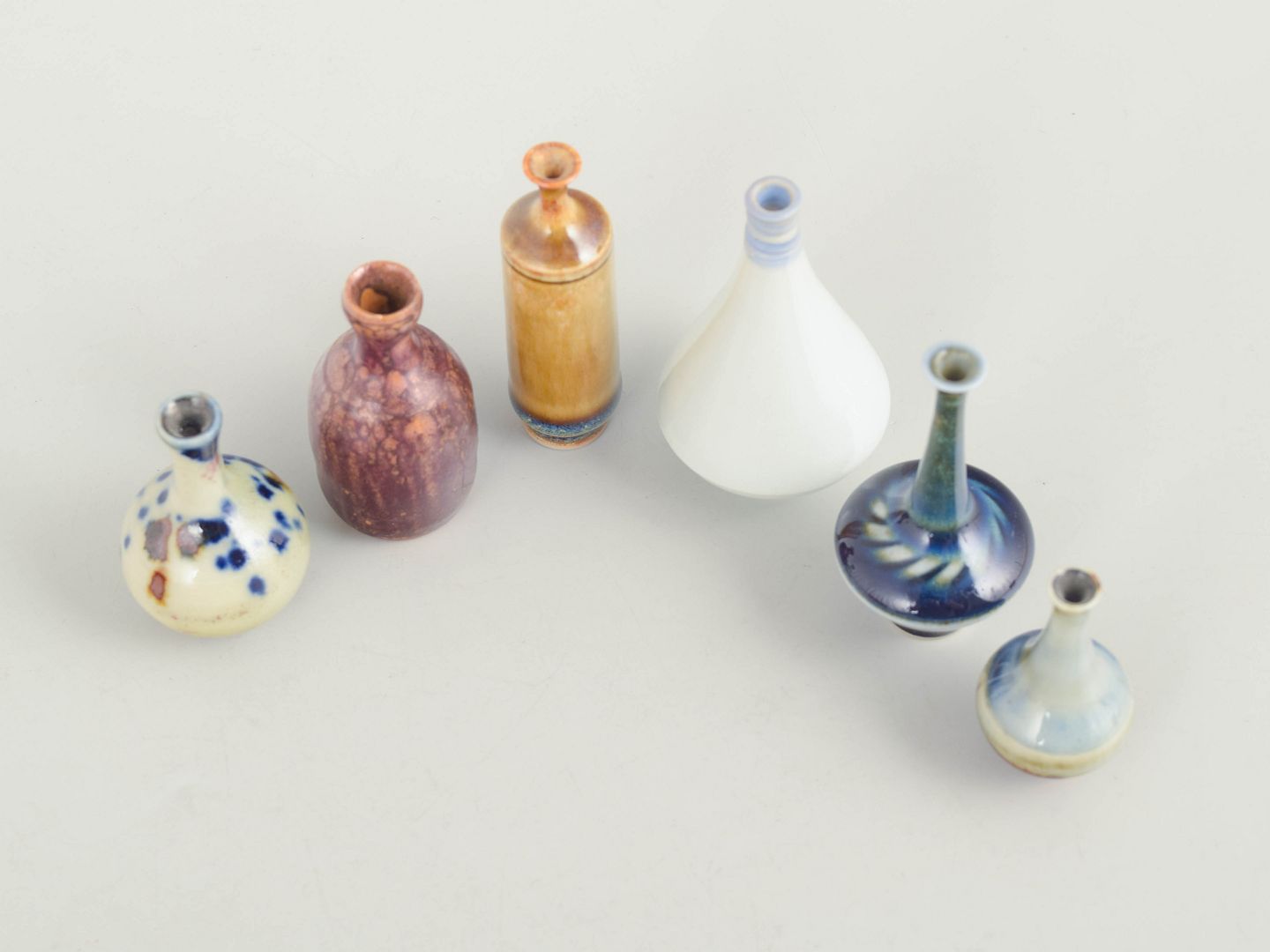 Sæt af seks miniature vaser i keramik.