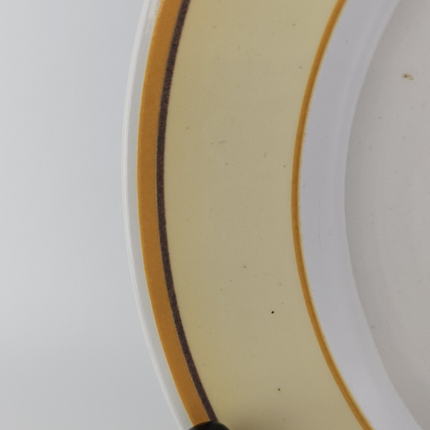 Flad frokosttallerken i fajance fra stellet Margrethe fremstillet i perioden 1937-1940.