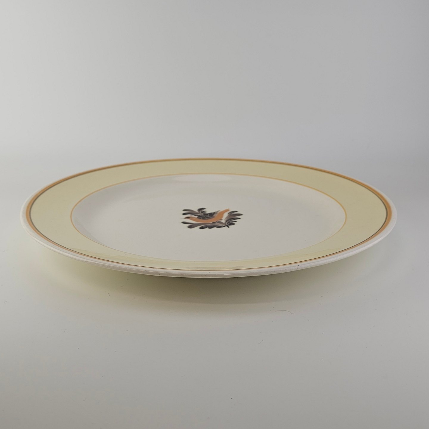 Rundt fad i fajance fra stellet Margrethe fremstillet i perioden 1937-1940.
