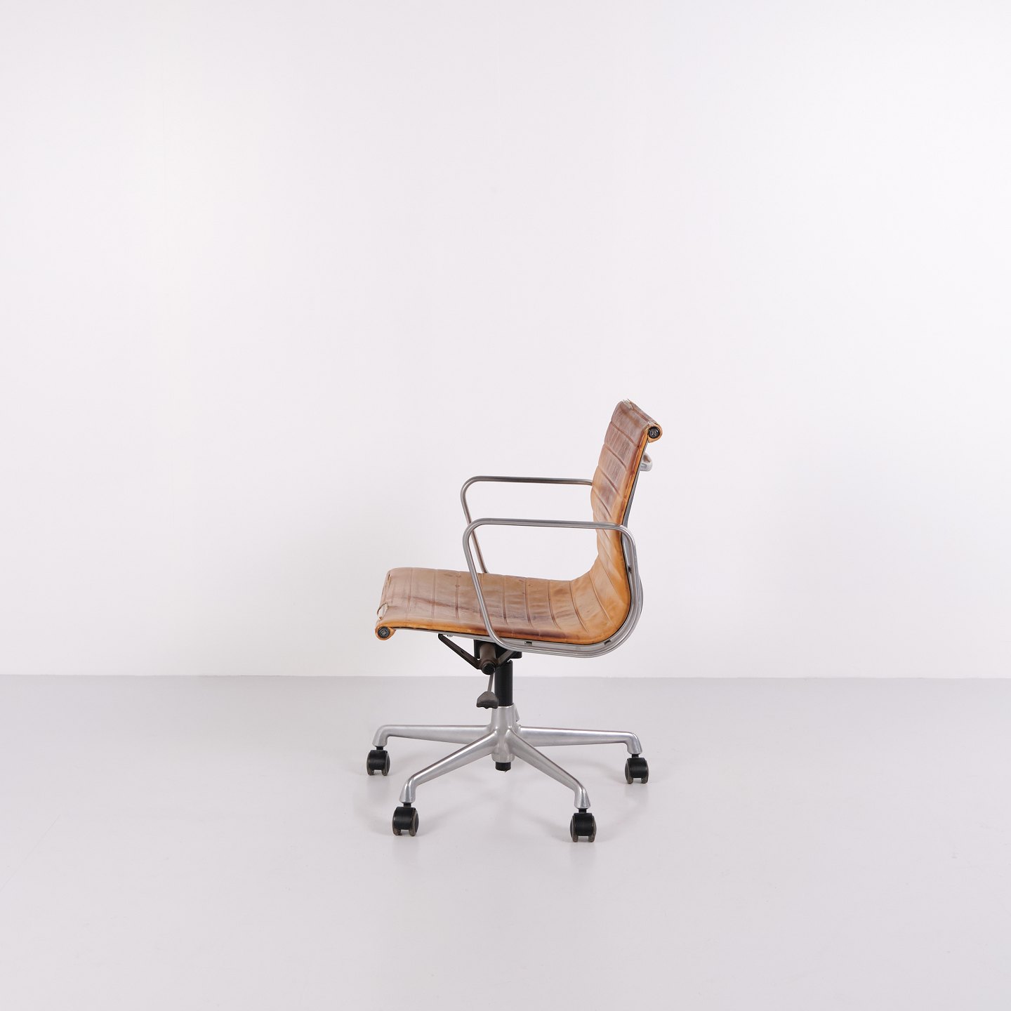 Charles Eames Kontorstol Model EA 117 i Aluminium og Cognacfarvet Læder, Vitra