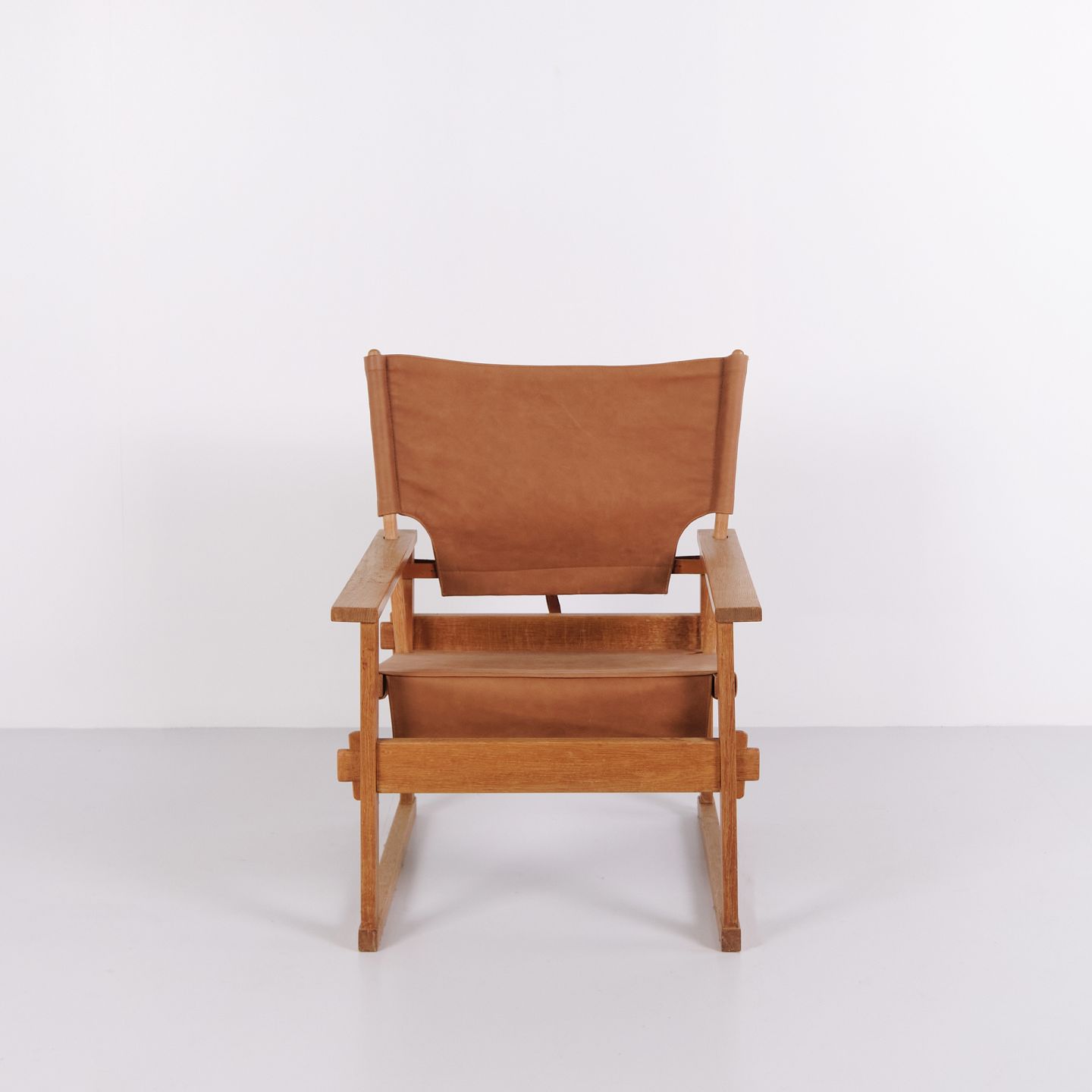 Lænestol, model 60, designet af Kai Winding i 1961 og fremstillet hos Poul Hundevad i Danmark. Stolen er udført i massivt egetræ med sæde og ryg i kernelæder, hvilket giver et klassisk og tidløst udtryk.