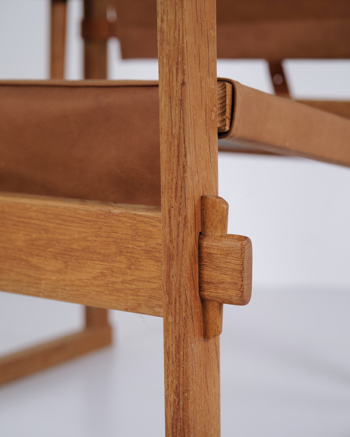 Designet kendetegnes ved en solid konstruktion og rene linjer, som er typiske for dansk møbeldesign fra begyndelsen af 1960’erne. Kombinationen af egetræ og kernelæder fremhæver stolens håndværksmæssige kvalitet og komfort.