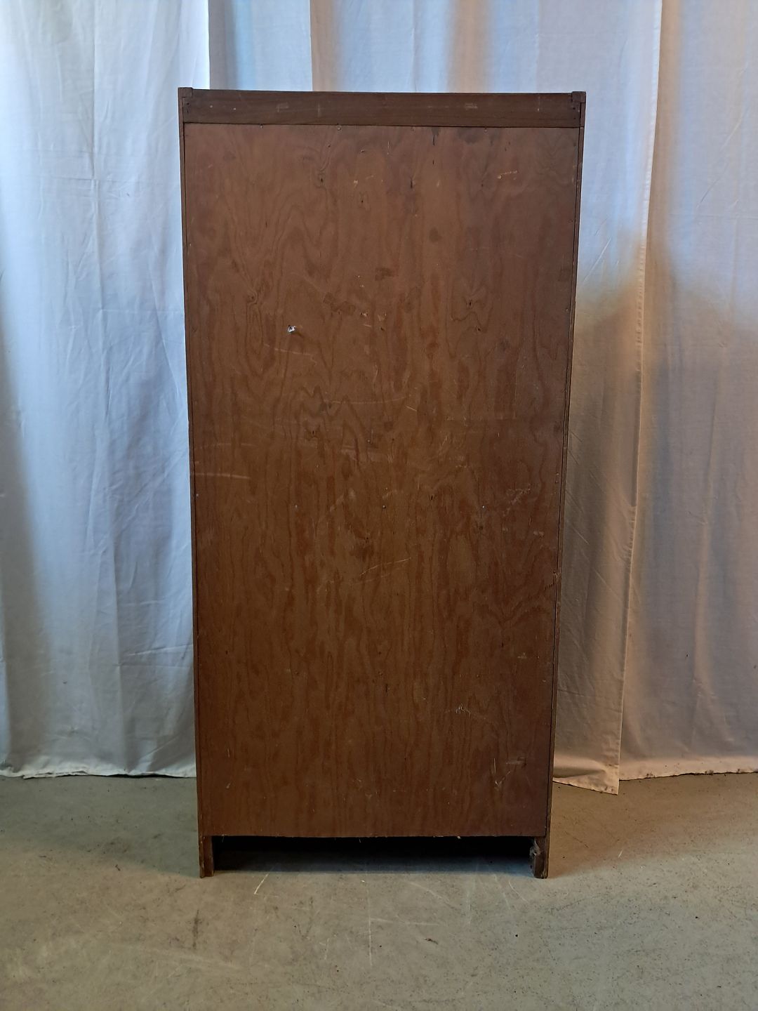 Reol i massivt bejdset og lakeret fyrretræ, fra 1950erne.