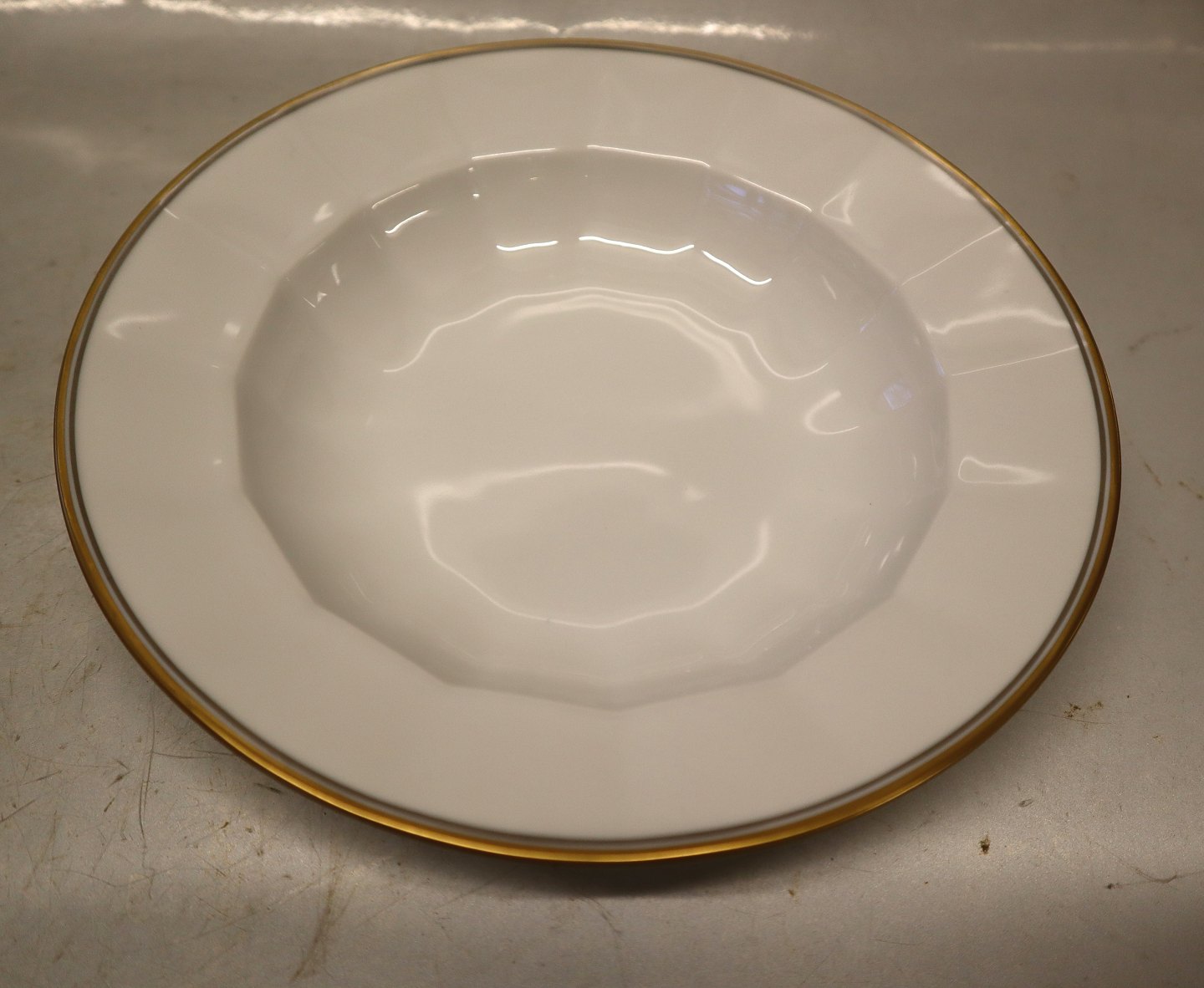 Palace 8547-1535 Small rim soup plate ca 21,2 cm (604) gold & grey lines Kongelig Dansk Kantet Porcelæn(Palads)