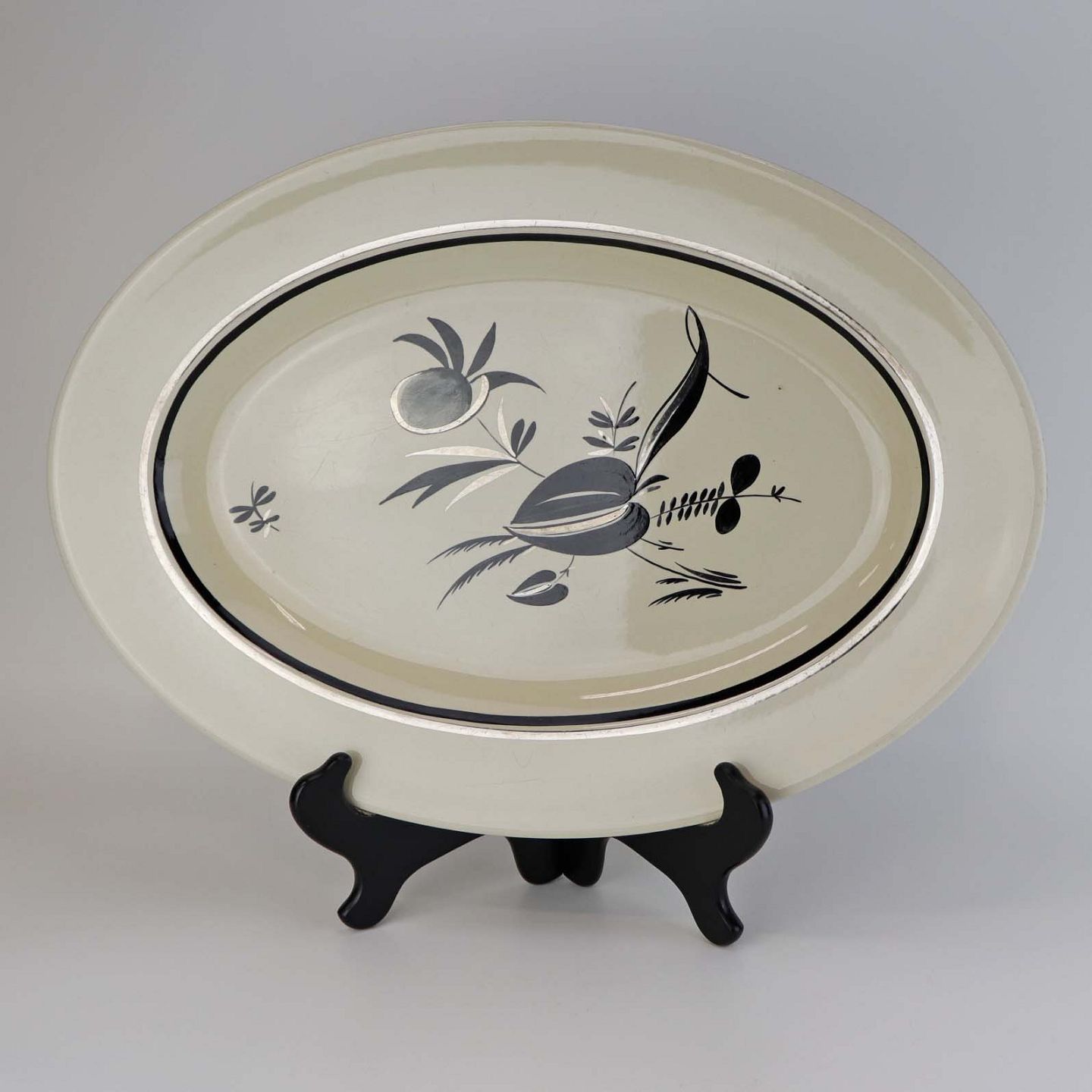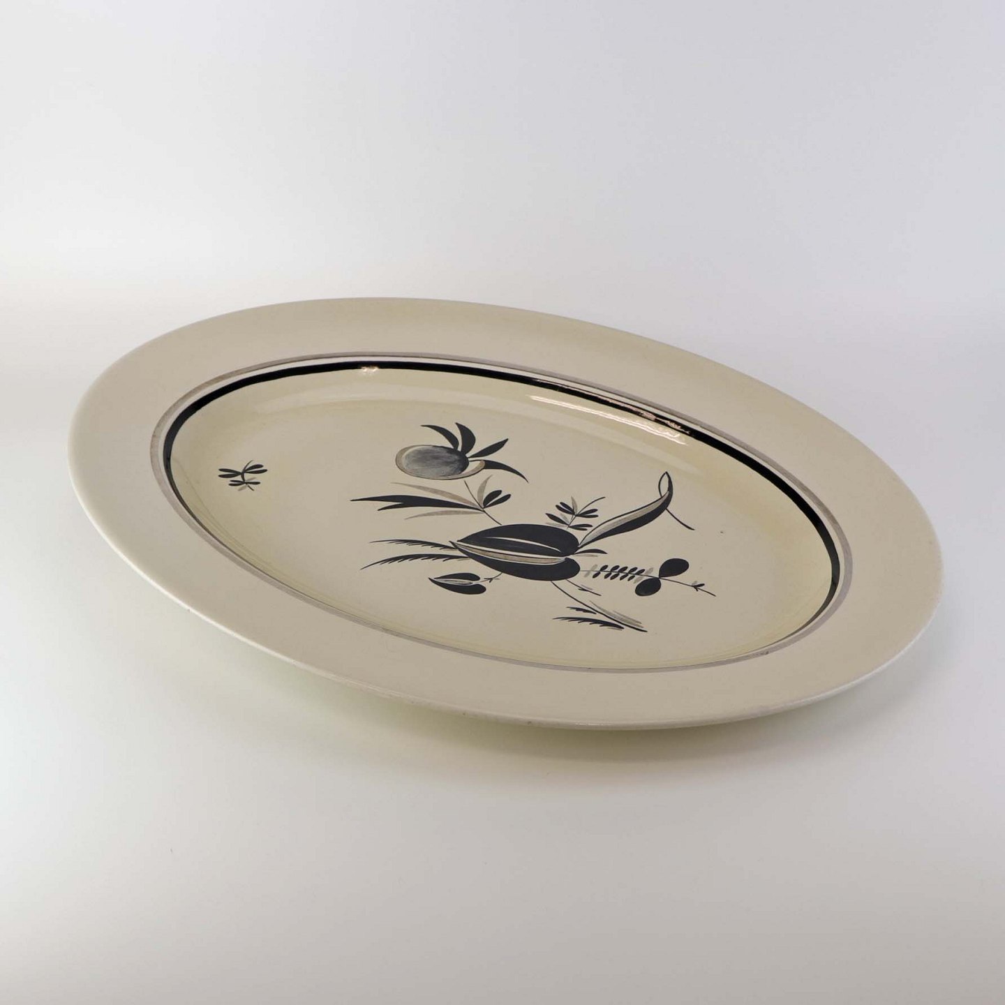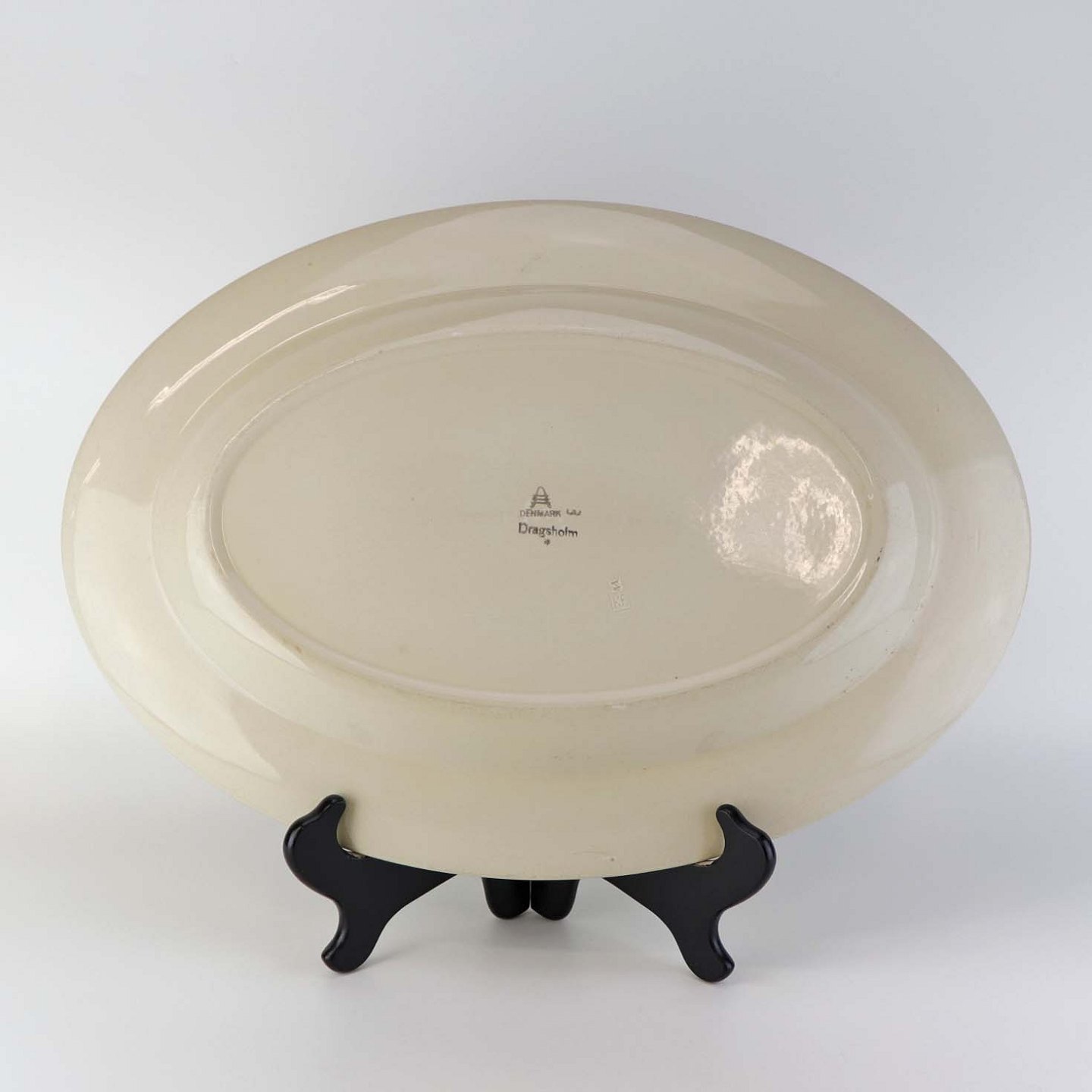 Stort ovalt serveringsfad i fajance fra stellet Dragsholm fremstillet i perioden 1934-1965. Nr 256