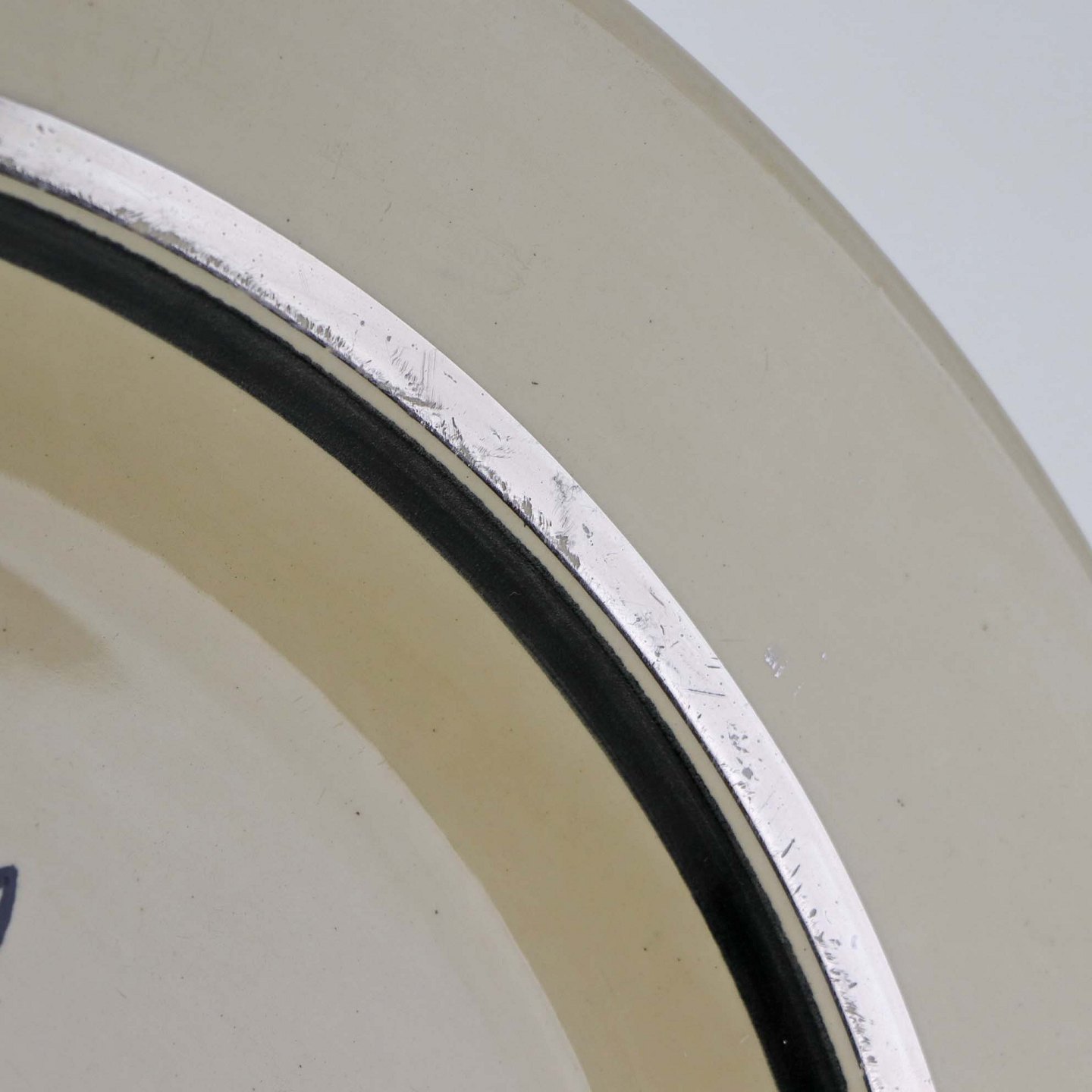 Fremstår med brugsspor på dekorationen samt ujævnheder i glasuren.