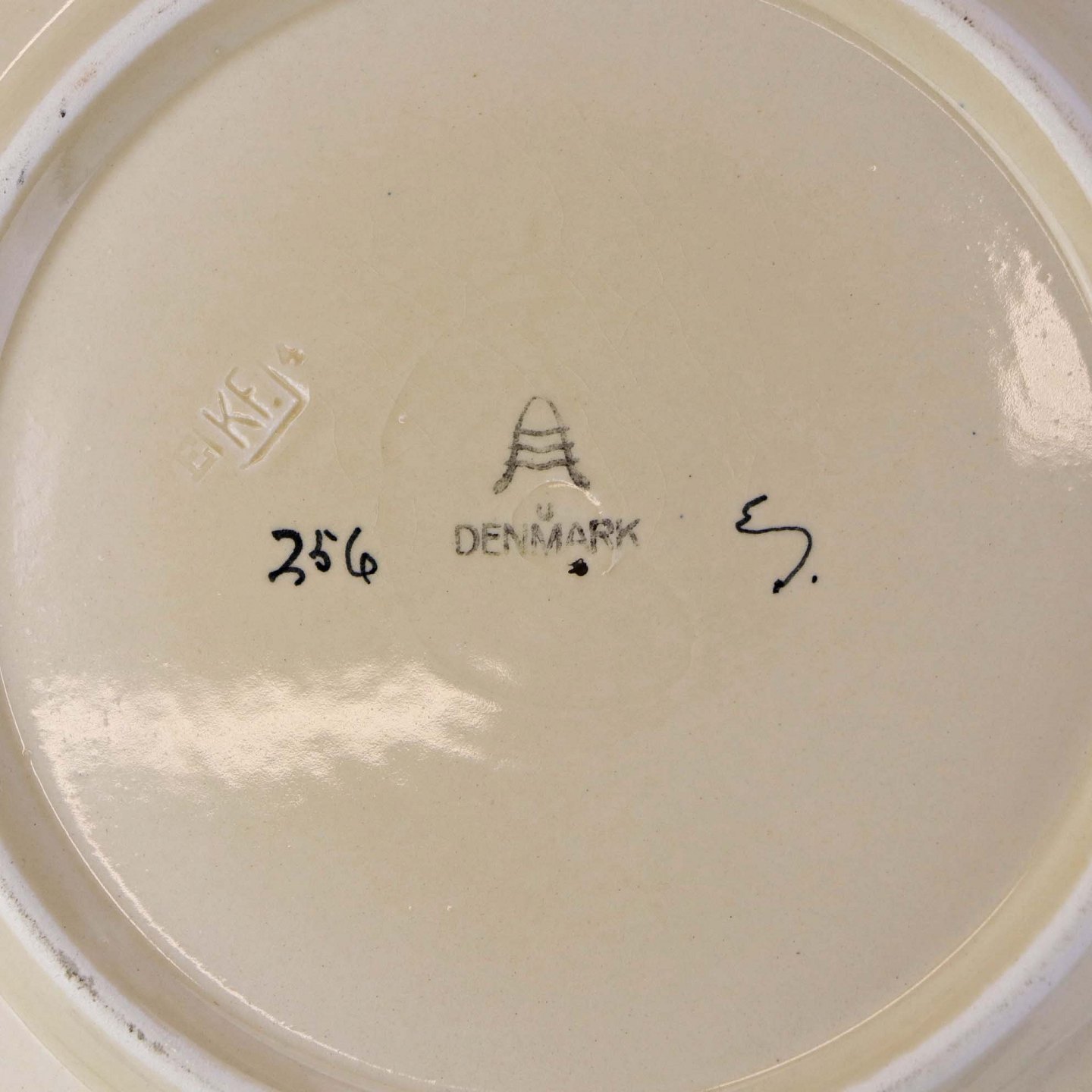 Rundt kagefad i fajance fra stellet Dragsholm fremstillet i perioden 1934-1965. Nr 256
