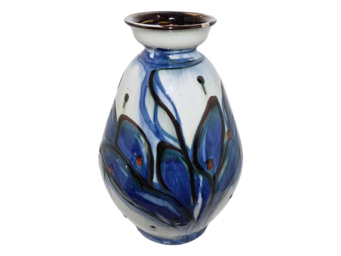 Større vase med blå og hvid dekoration