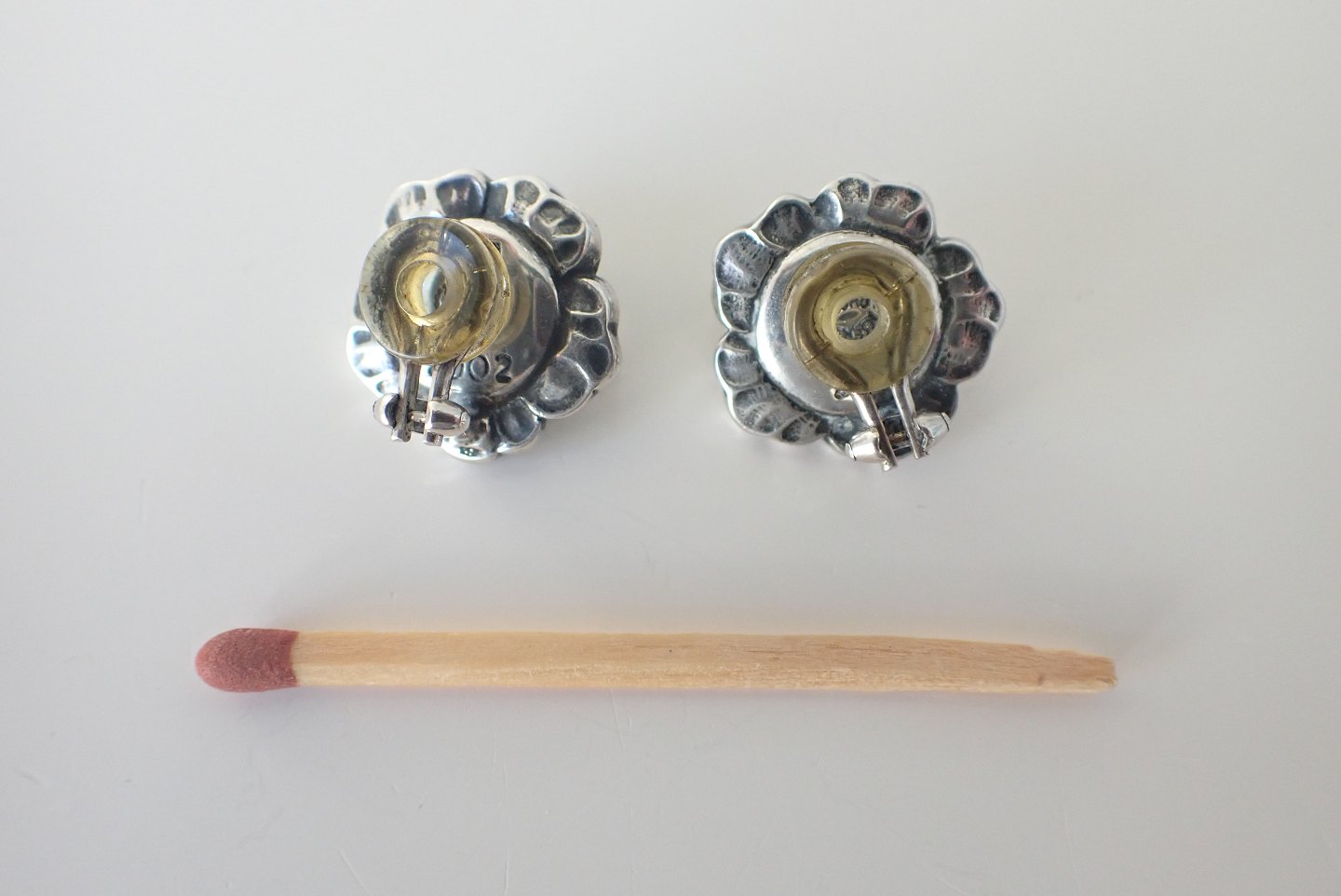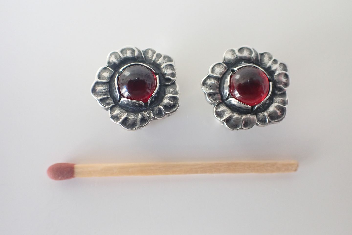 Georg Jensen - blomsterøreklips i sterling sølv med granater.