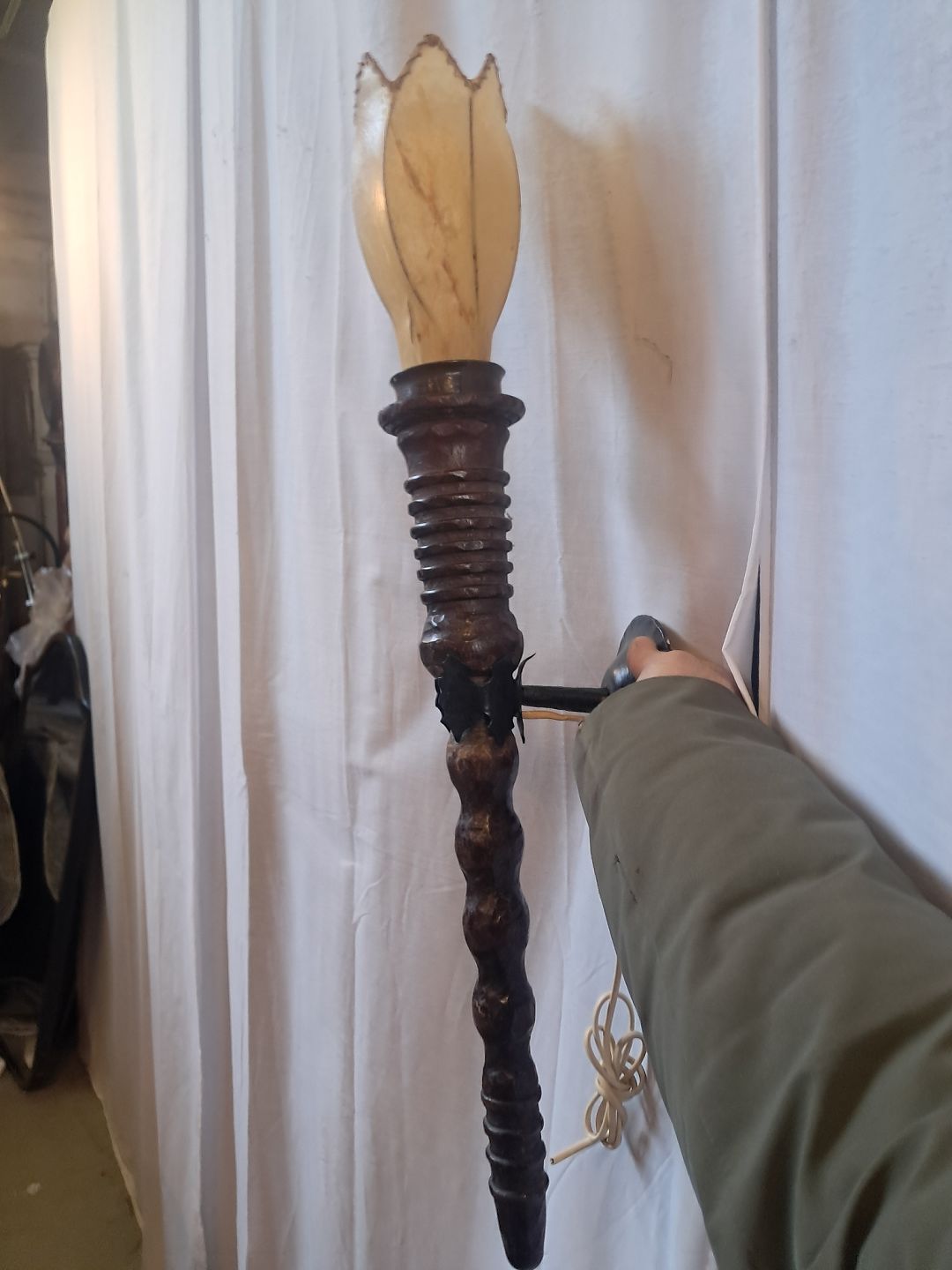 2 Væglamper i massivt egetræ og smedejern, fra 1930erne.