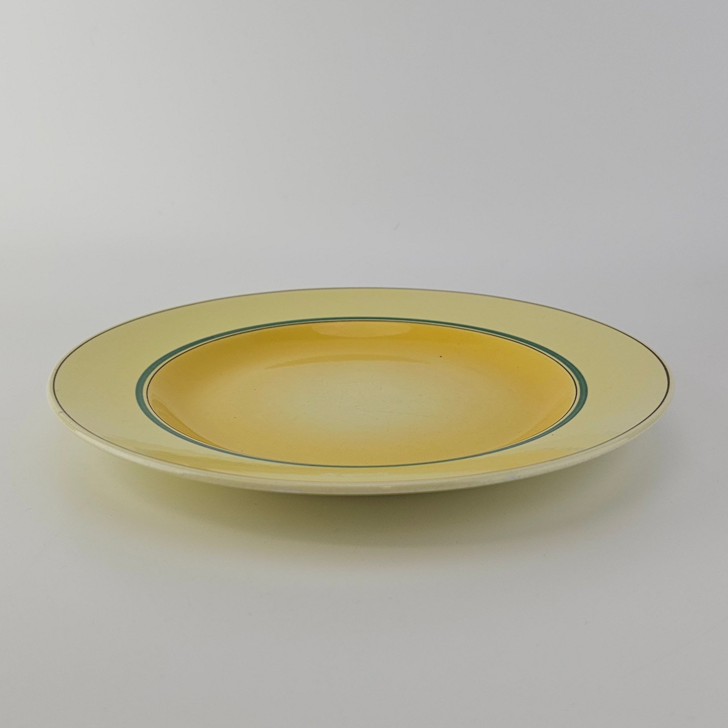 Flad tallerken i fajance fra stellet Gertrud fremstillet i perioden 1933-1939.