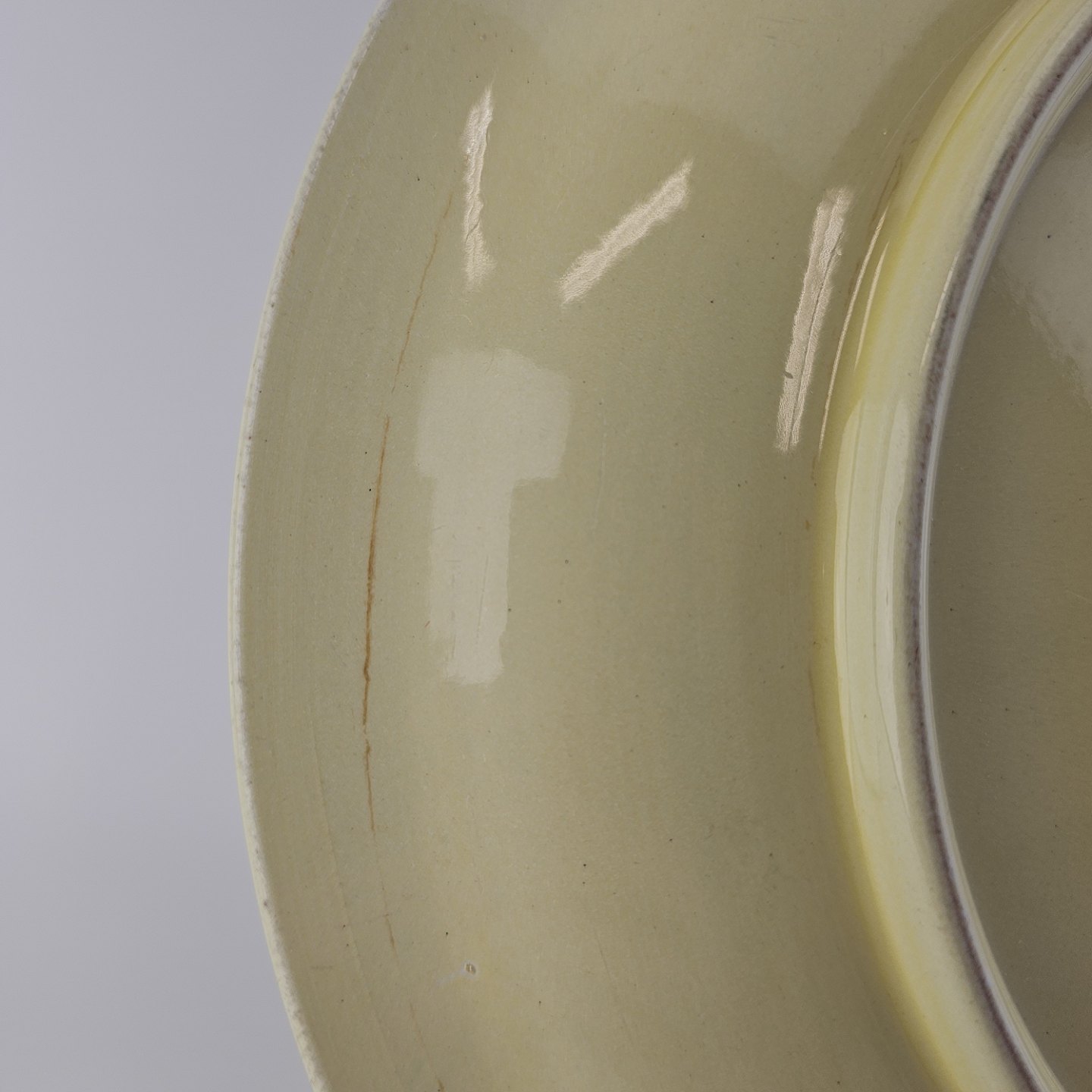 Rundt fladt fad i fajance fra stellet Gertrud fremstillet i perioden 1933-1939.
