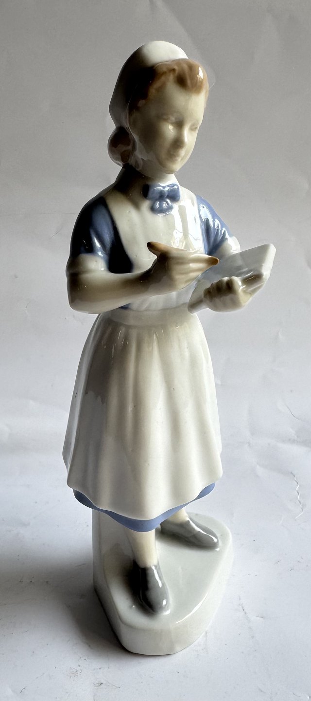 Figur af kvindelig sygeplejerske i porcelæn. I god stand uden skader eller reparationer. Fabriksmærket på bunden. H. 19,7 cm