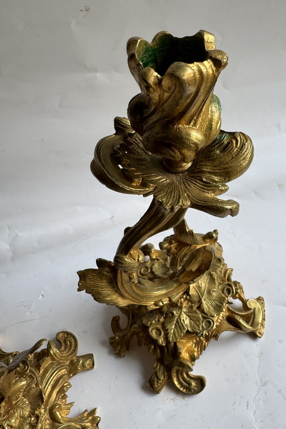 Pair of rococo gilt bronze candlesticks made in France in the mid-19th century. In good condition with very few signs of wear. H. 22.5 cm.