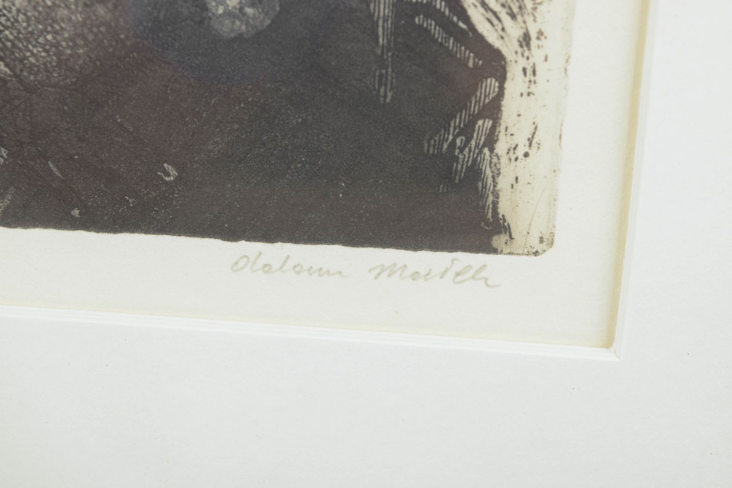 Ekspressivt figurativt motiv udført som litografi med to figurer i tæt komposition, udført i sort og gråtoner med markante grafiske skraveringer. Signeret i blyant nederst, signaturen er vanskelig at tyde, og nummereret 14/40.