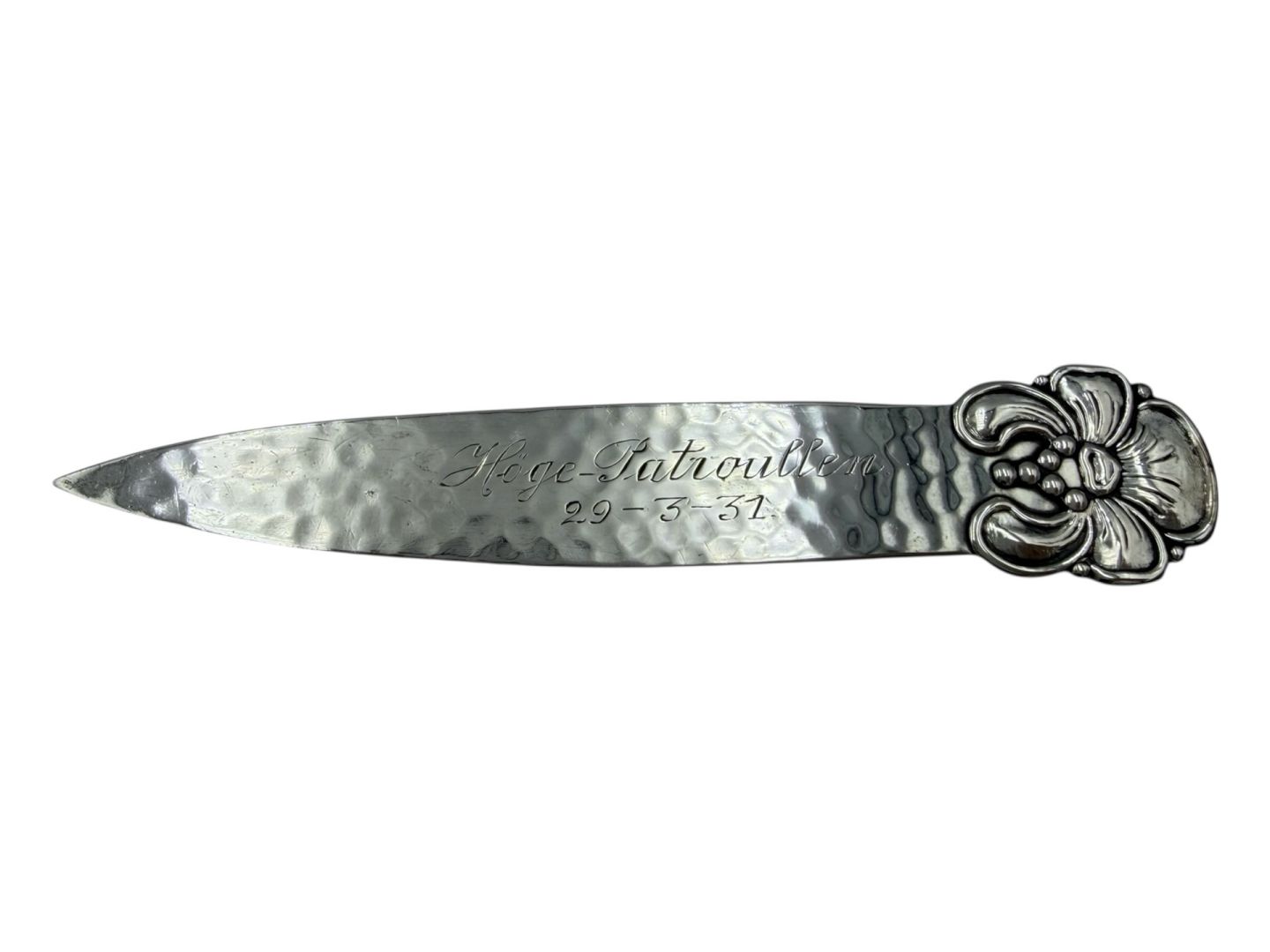 Dansk sølv, stort bogmærke i flot og kraftig kvalitet fra 1918.