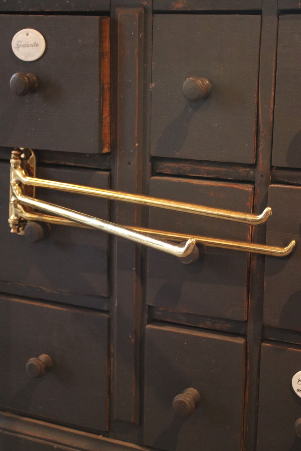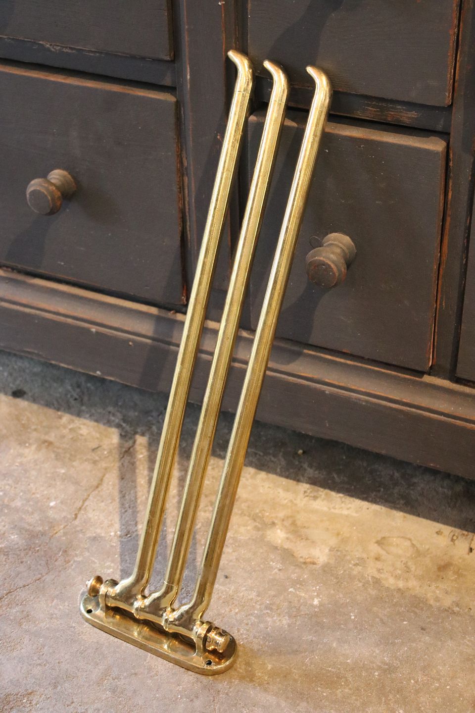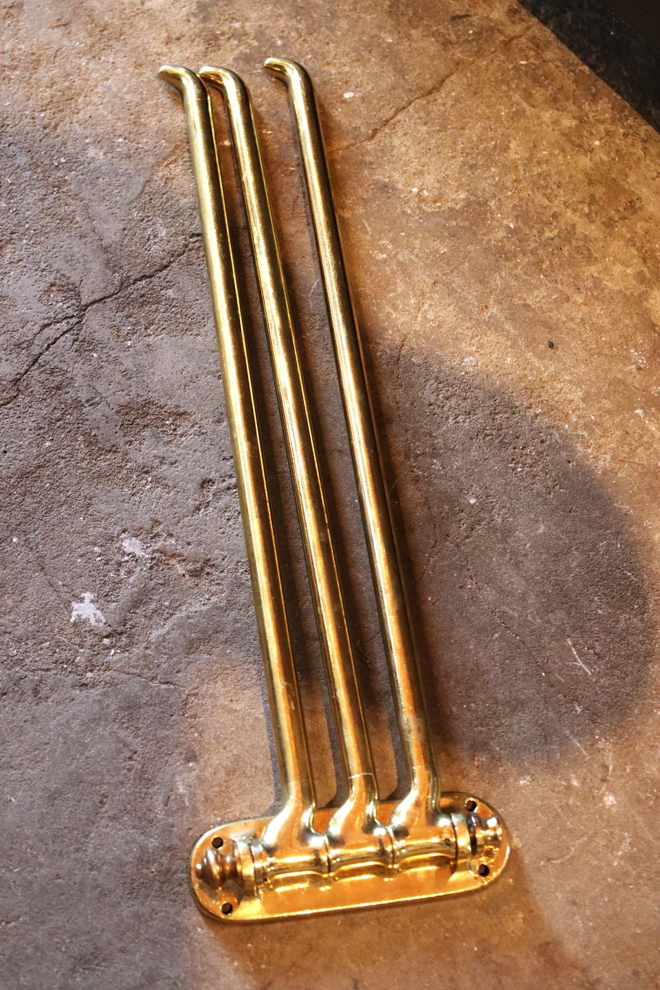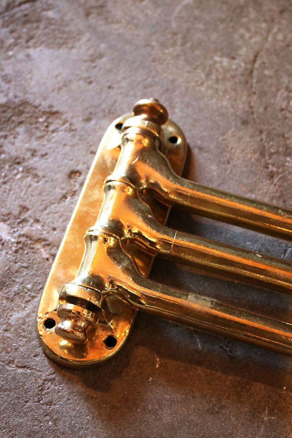 Gammel fransk væghængt håndklæde holder i massiv messing med fin patina...