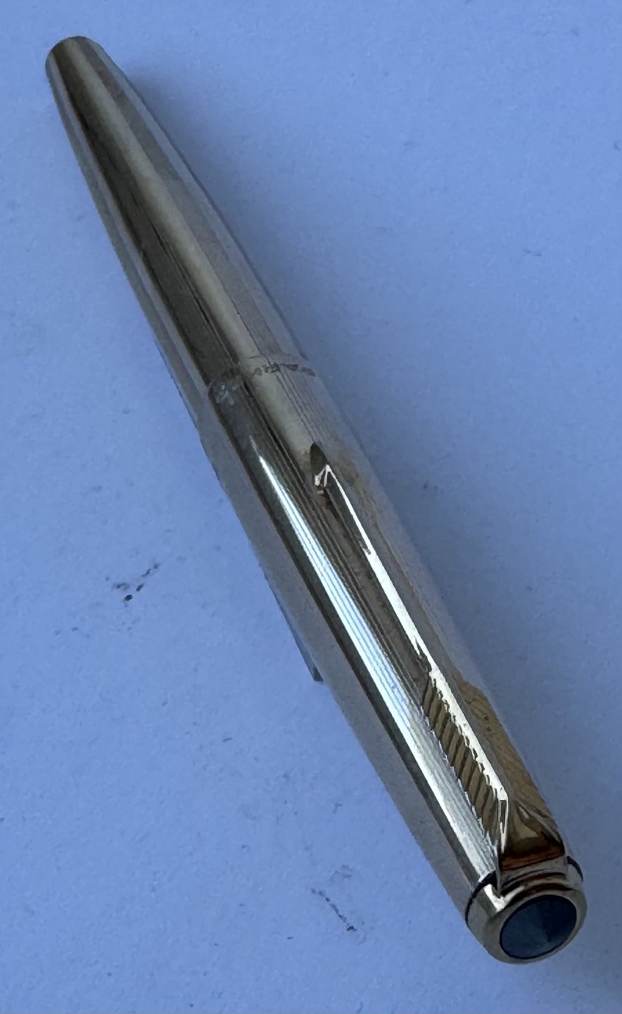 Guld-double Parker 61 fyldepen. Klar til at blive brugt. Fremstår i god og funktionsdygtig stand. Brugt meget lidt. Ingen særlige brugsspor. L. 13,3 cm