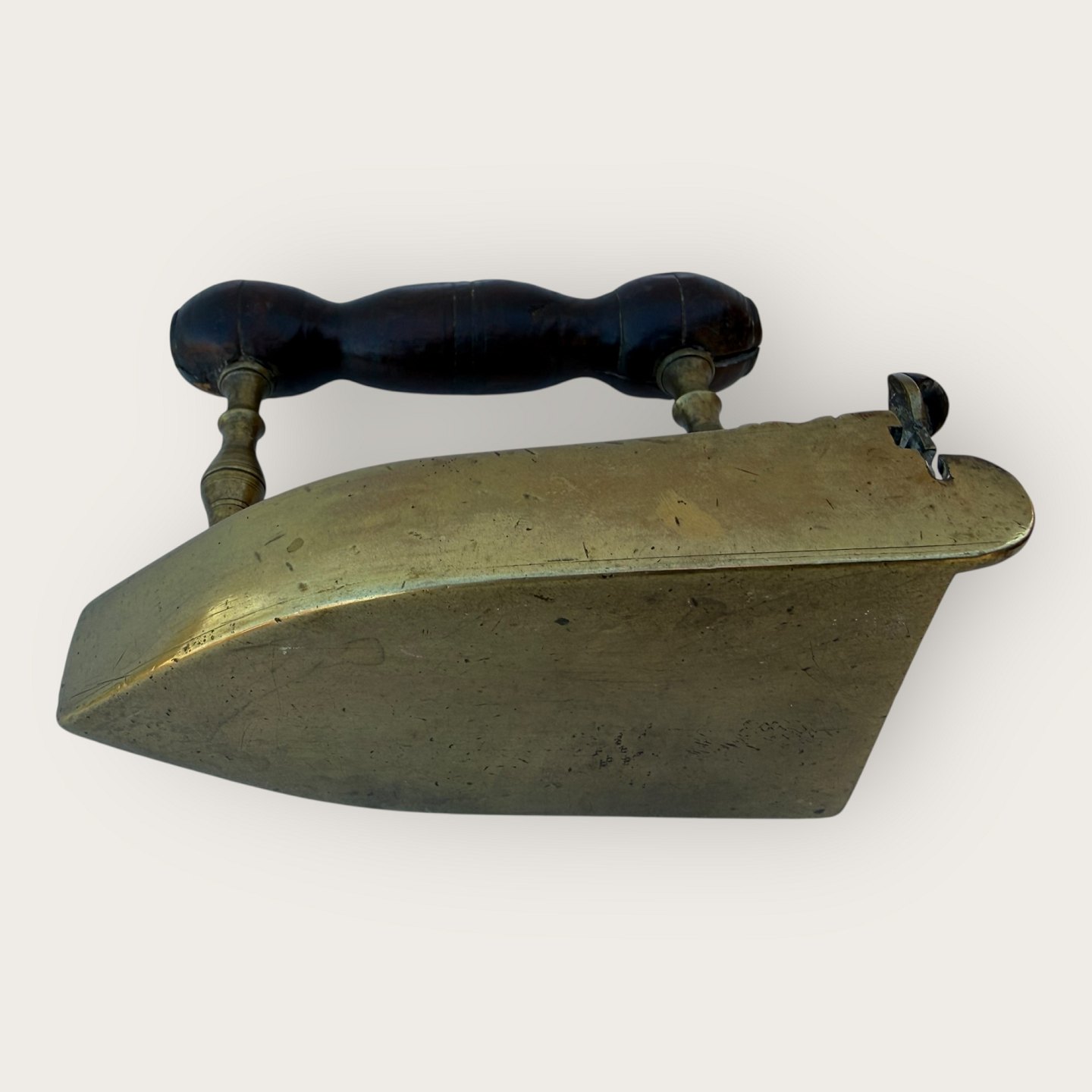 Messing strygejern, mærket med ejerinitialer og 1784, Mål ca.: HxLxb 11x14x8cm *Pæn brugt stand*