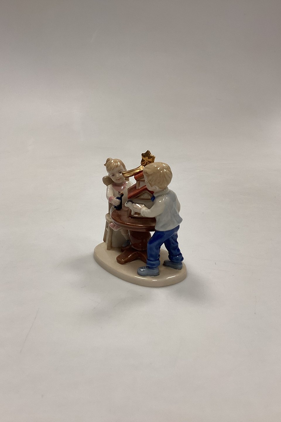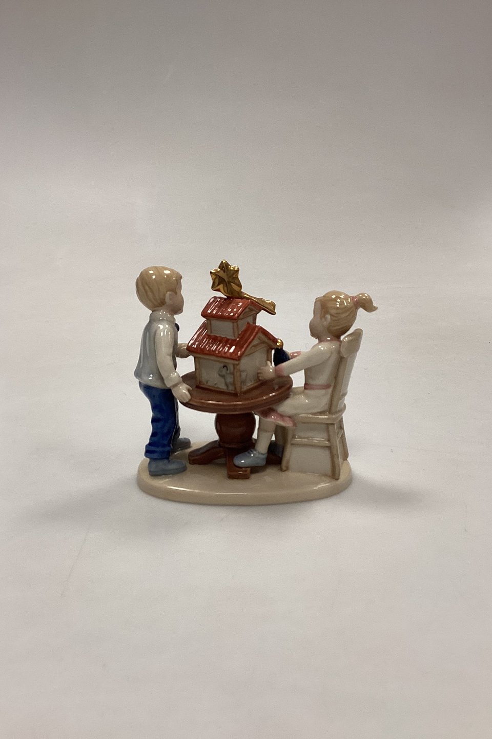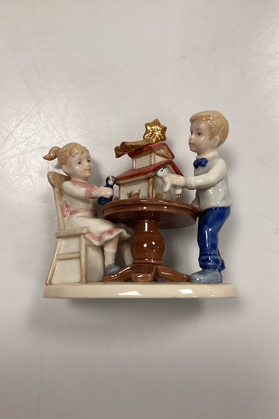 Royal Copenhagen Christmas Figurine - Boy and Girl with Nativity Scene No. 294. Designed by Sven Vestergaard.