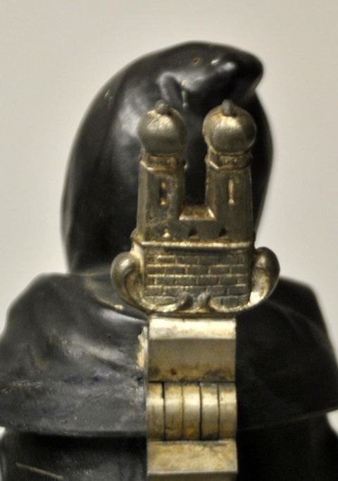 Tysk ølkrus, 1891 i glas med tinlåg. Ælkruset med slibninger. Låg af tin med dekoration af Germania og jernkorset fra 1870/1871. Gæk i form af ørn. På låg indgravering: Peter Asmussen 22 juli1891. Højde.: 15 cm.
