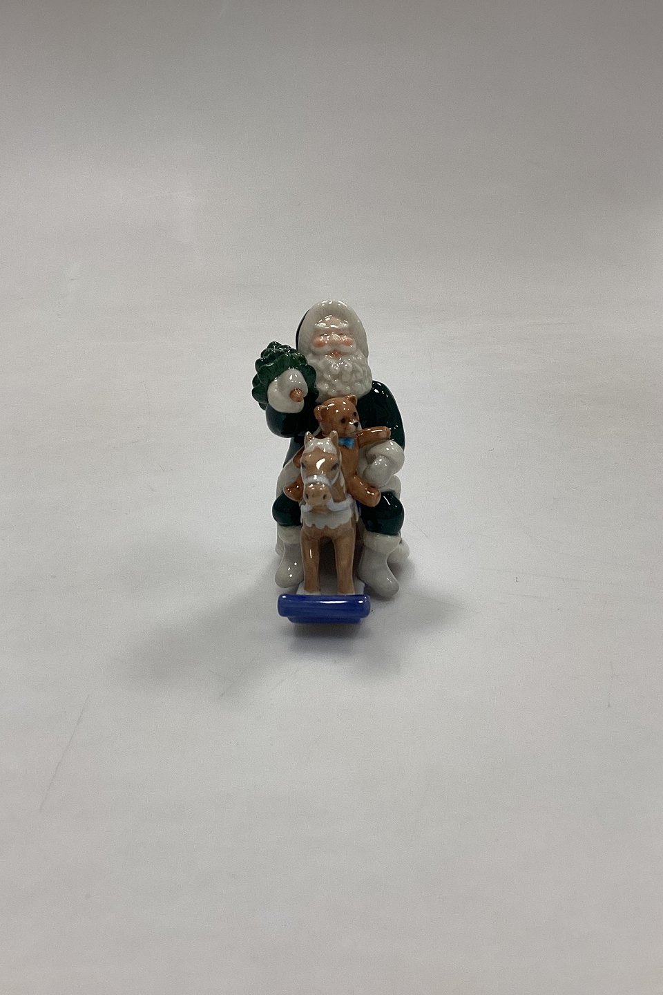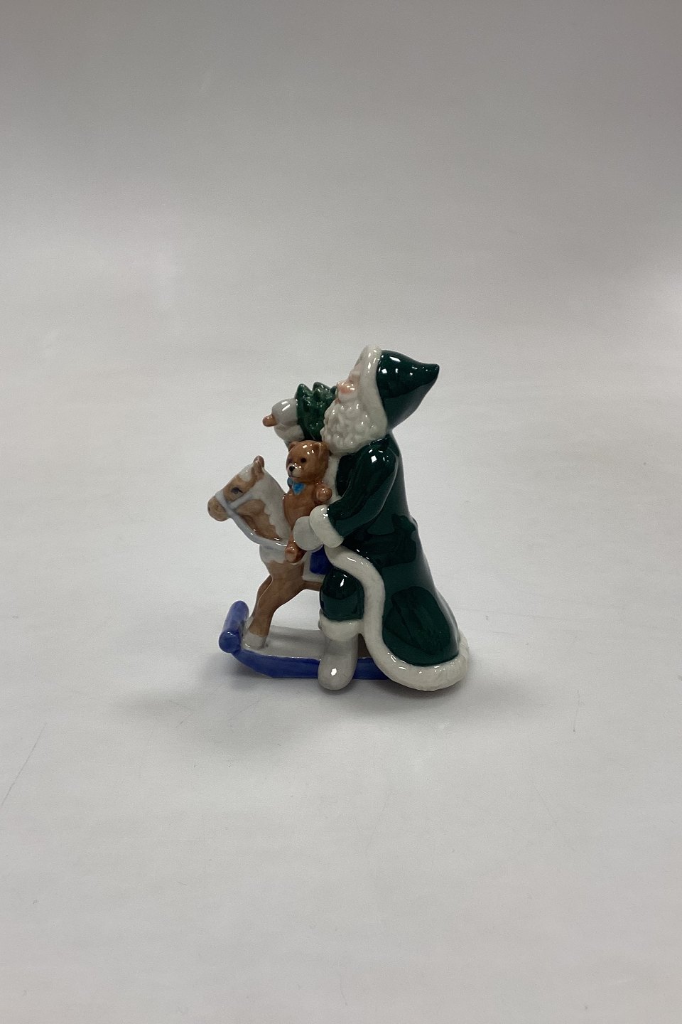 Royal Copenhagen Figurine Santa Claus of the Year 2005 No. 771. Santa Claus in green clothes on a rocking horse. Designed by Sven Vestergaard.
