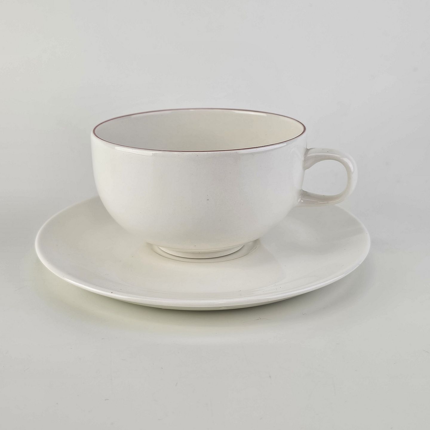 Stor hvid morgenkop med underkop i fajance fra stellet 4 All seasons