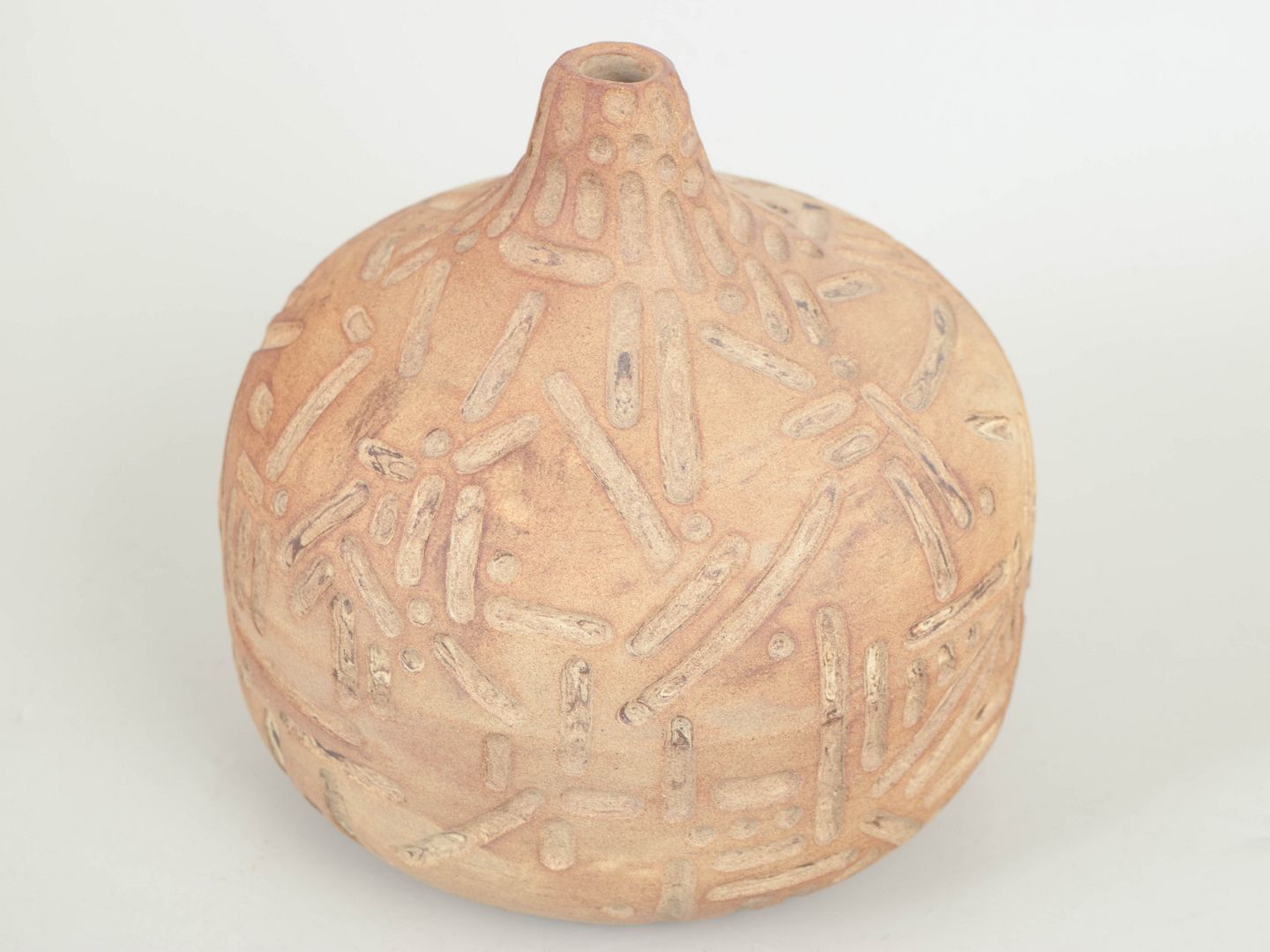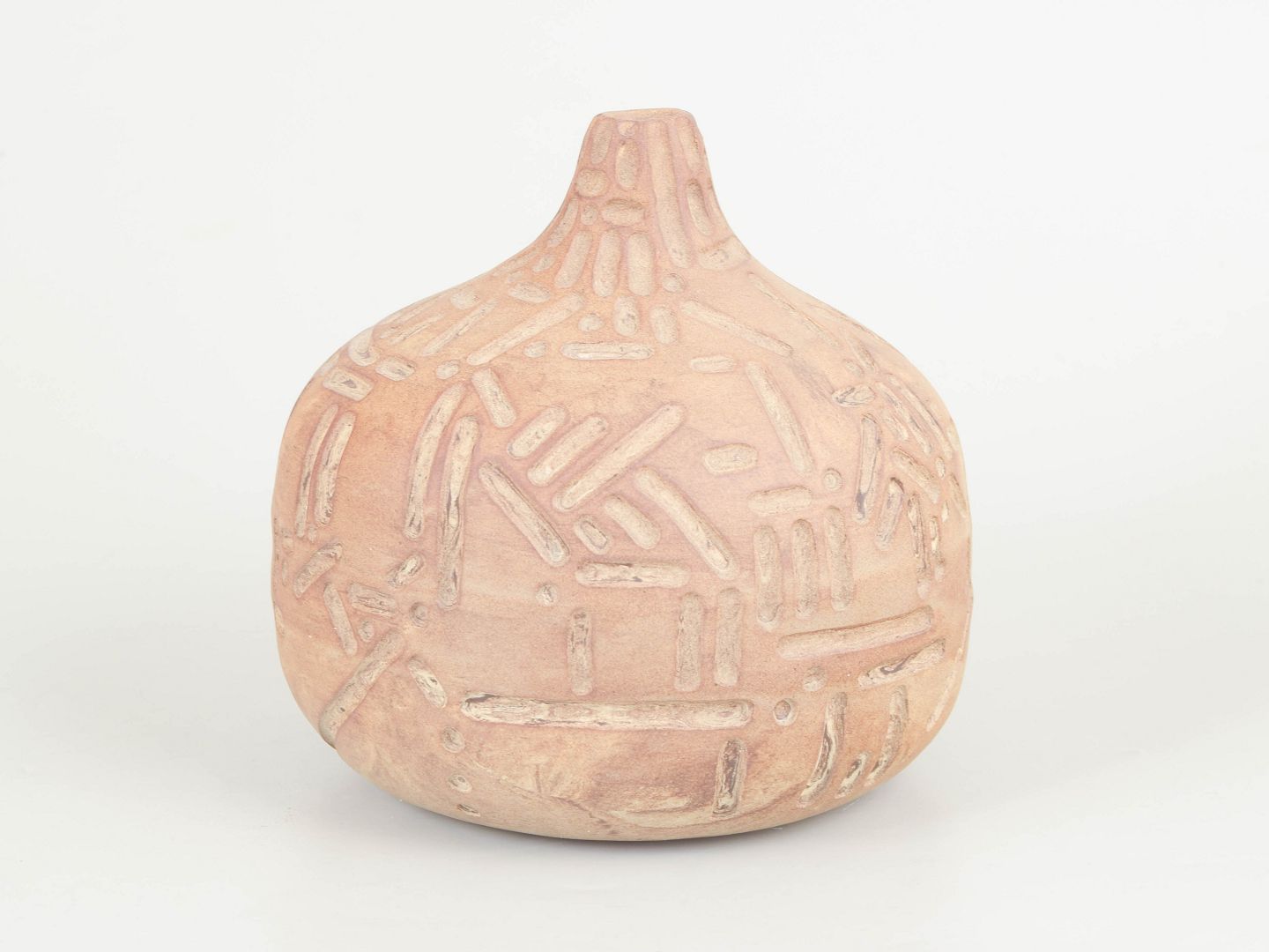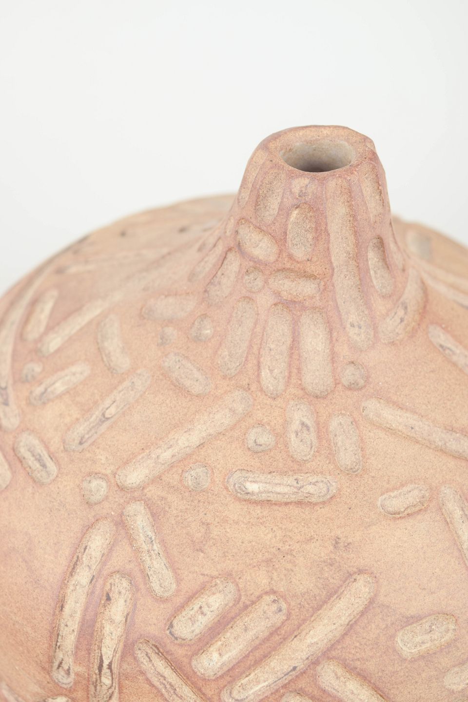 Unika stentøjsvase, organisk formet. Værket fremstår uglaseret med udskæringer.
