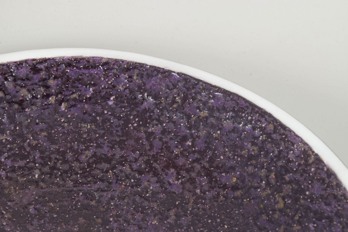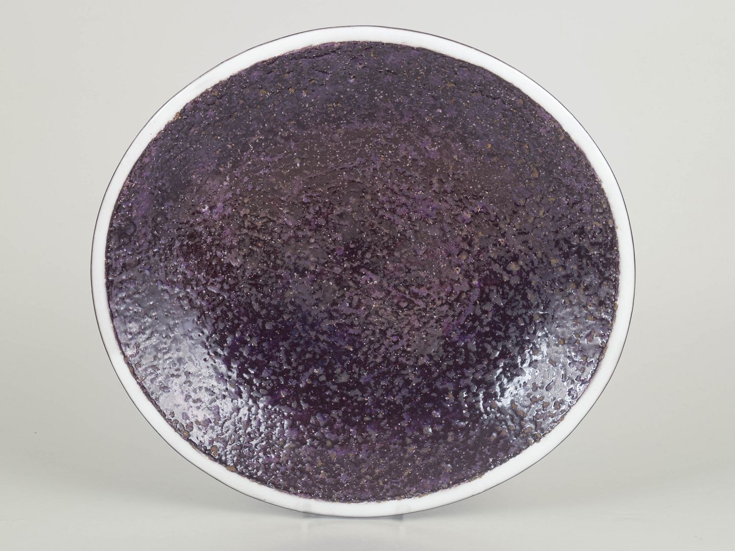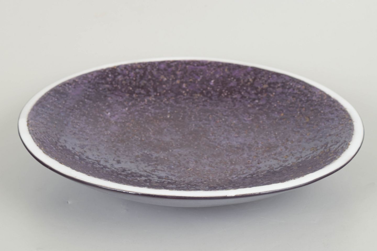 Stort fad i stentøj model 2401 med karakteristisk kraftig glasur i dybe violette nuancer og let krateragtig struktur.