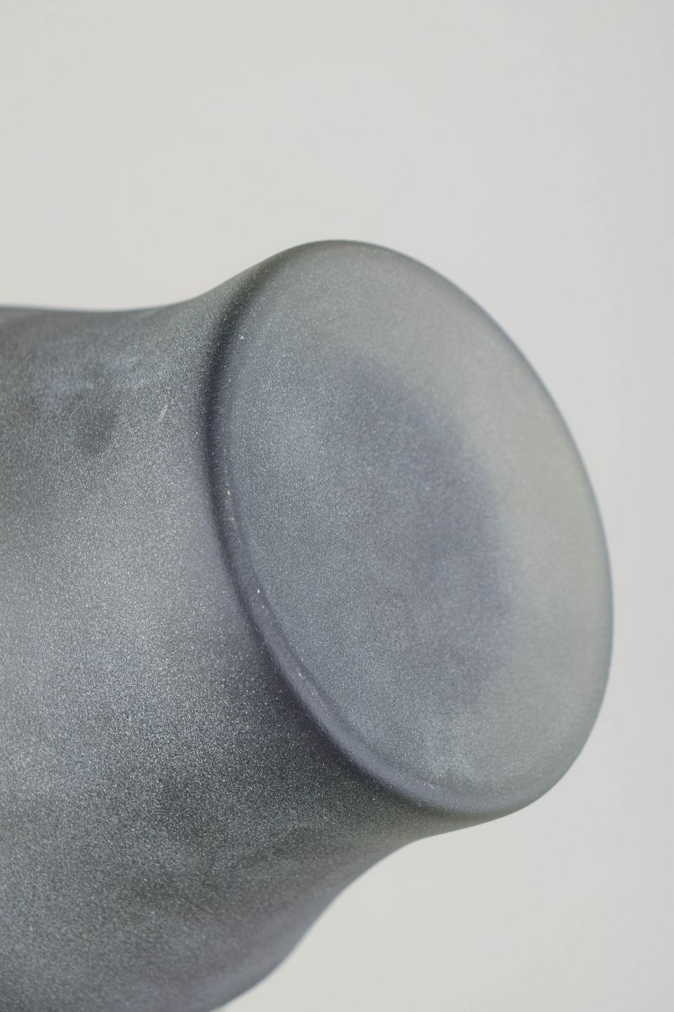 Skulpturel mundblæst glasvase med matteret overflade og lagdelte horisontale bånd i røggrønne og grå nuancer. Elegant organisk form med karakteristisk venetiansk glasbearbejdning.