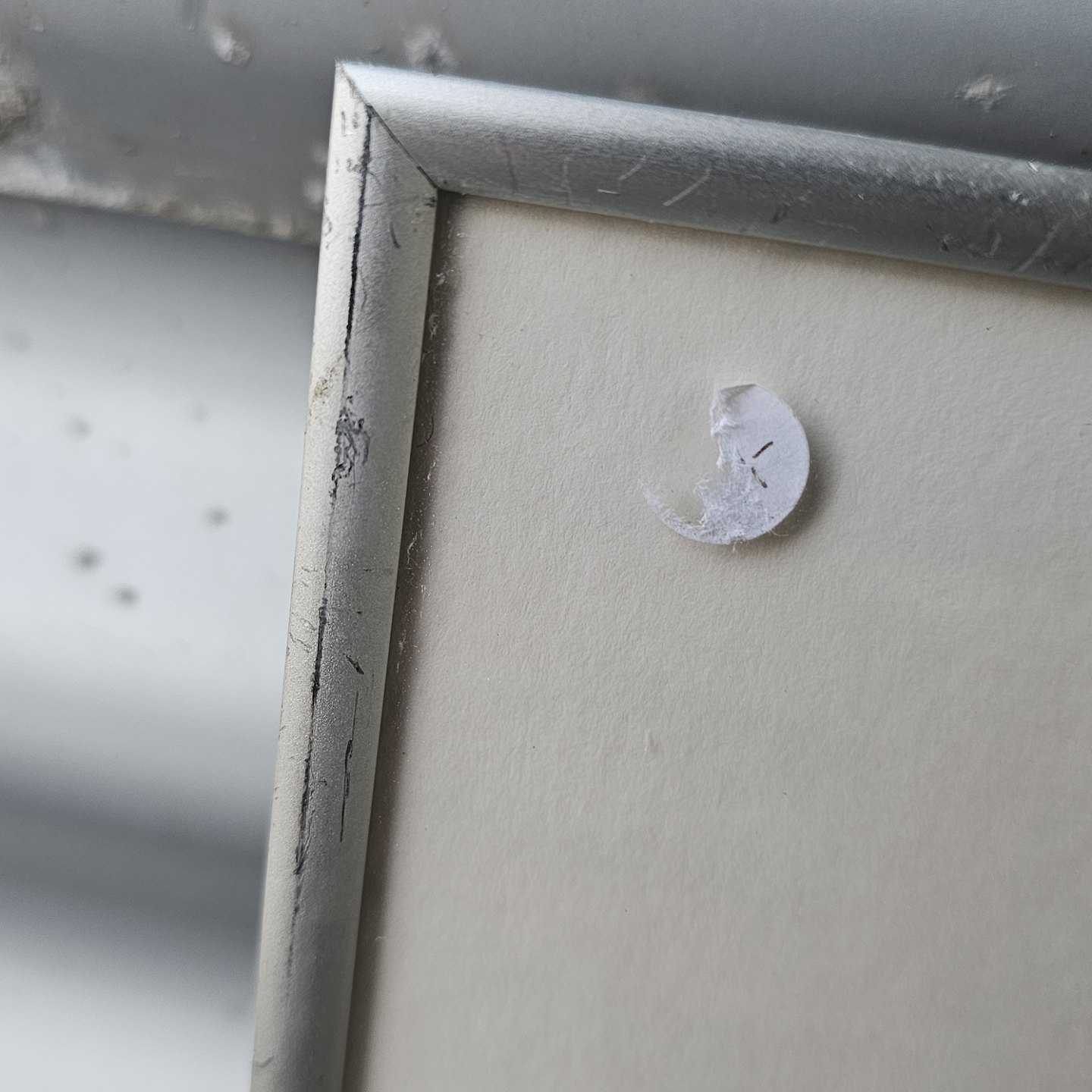 Litografi med blå, hvide og gule farver på lyseblå baggrund i metal ramme. 13/92