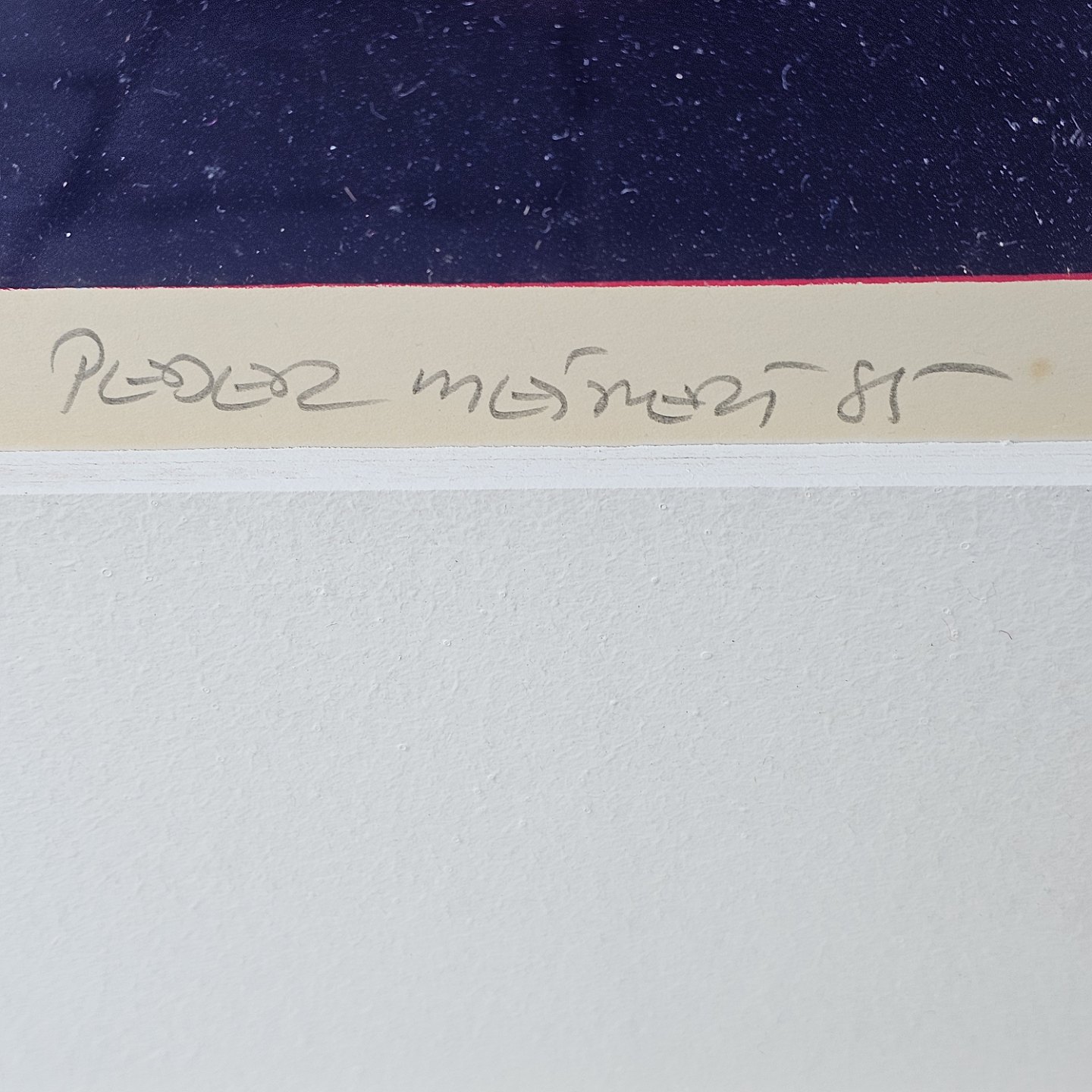 Litografi i rød og mørkeblå i metal ramme. 13/45