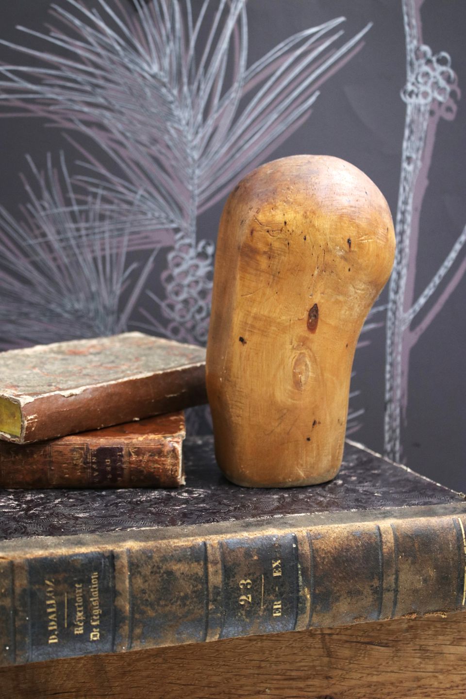 Dekorativt , antikt mini hatte hoved i udskåret træ med en rigtig fin patina...