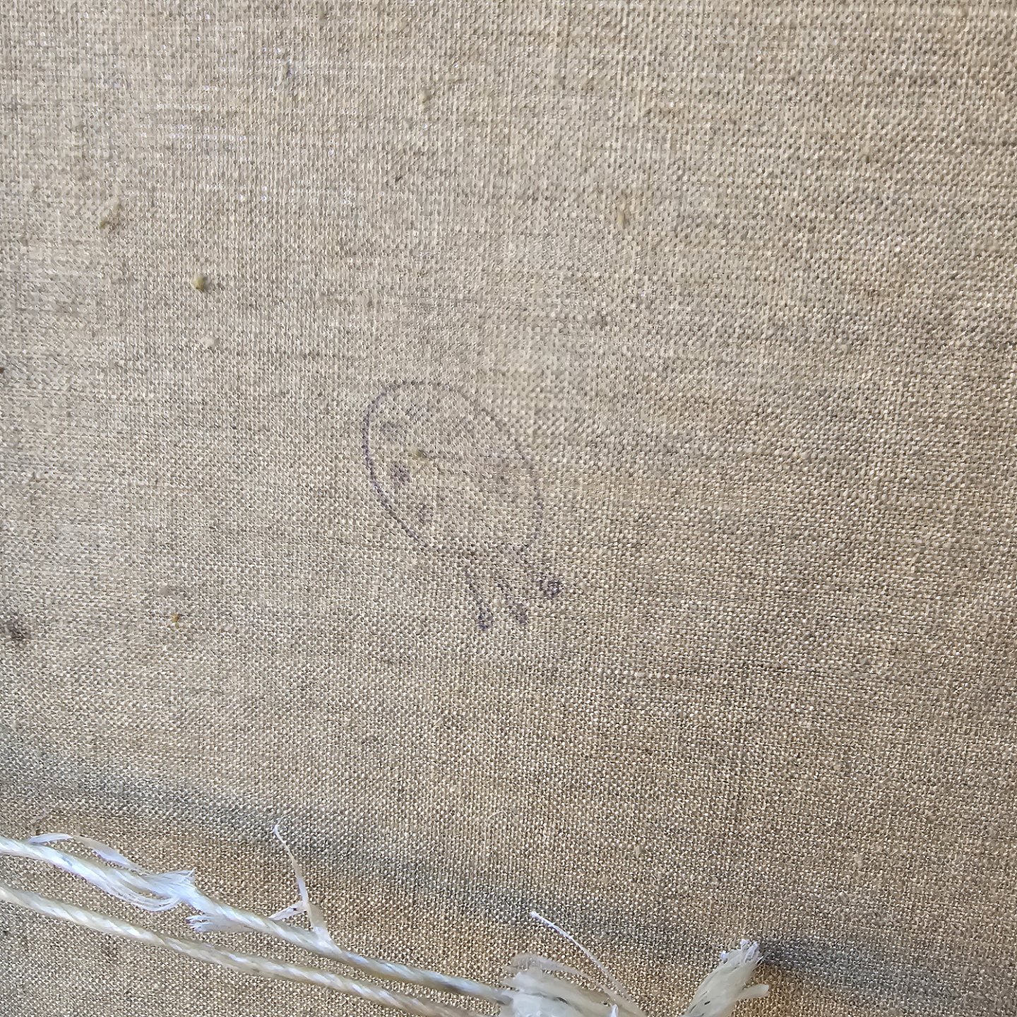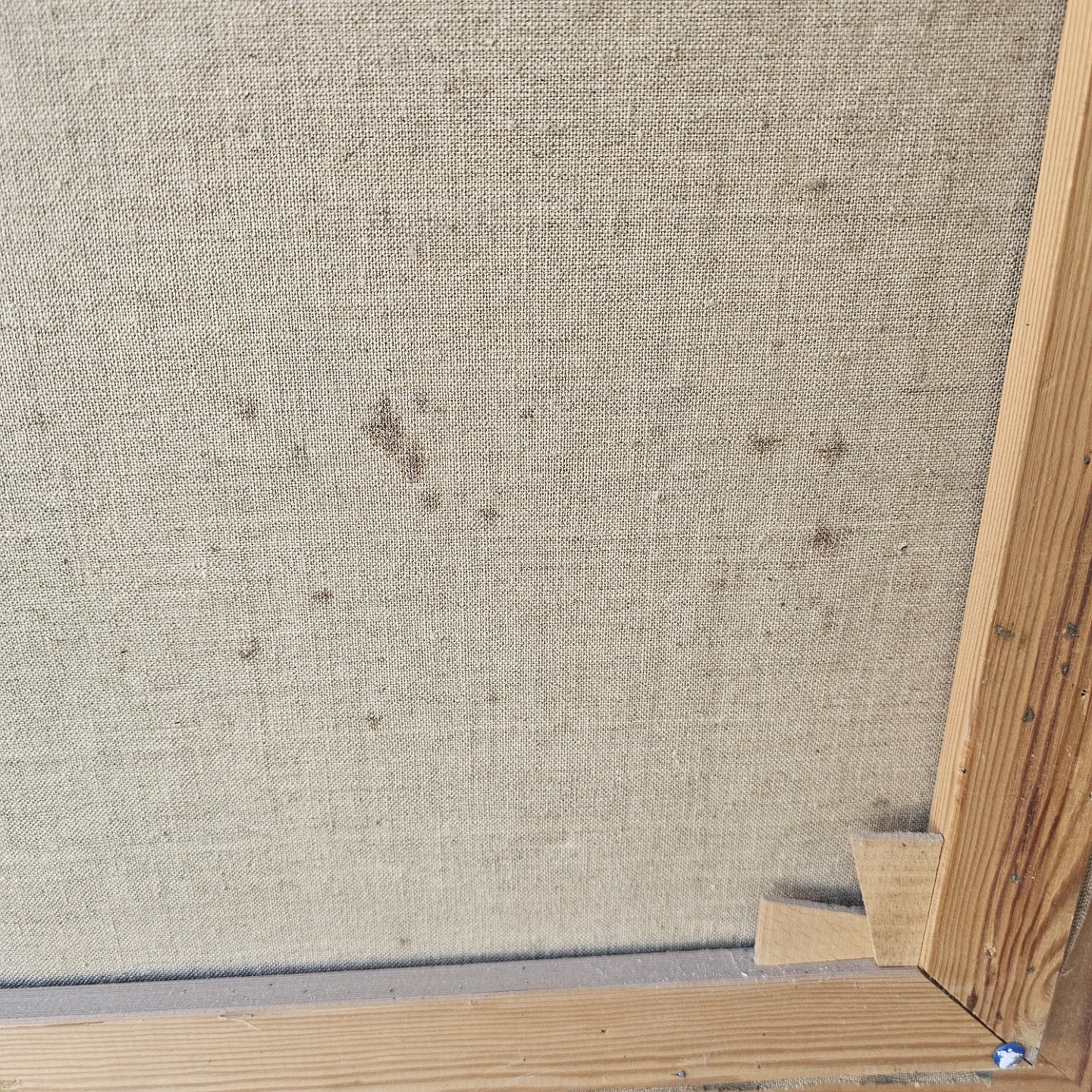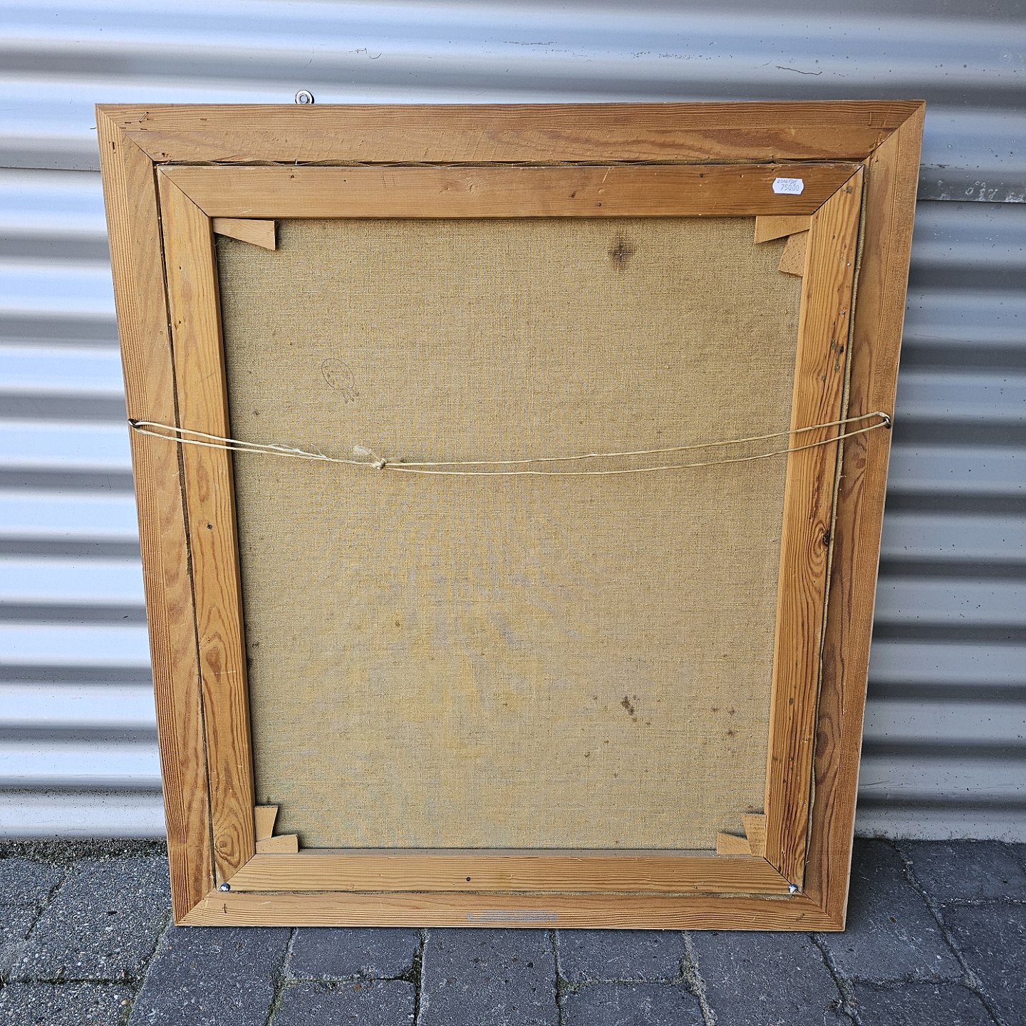 Oliemaleri på lærred monteret i hvid- og guldmalet ramme med motiv af en vase med blomster
