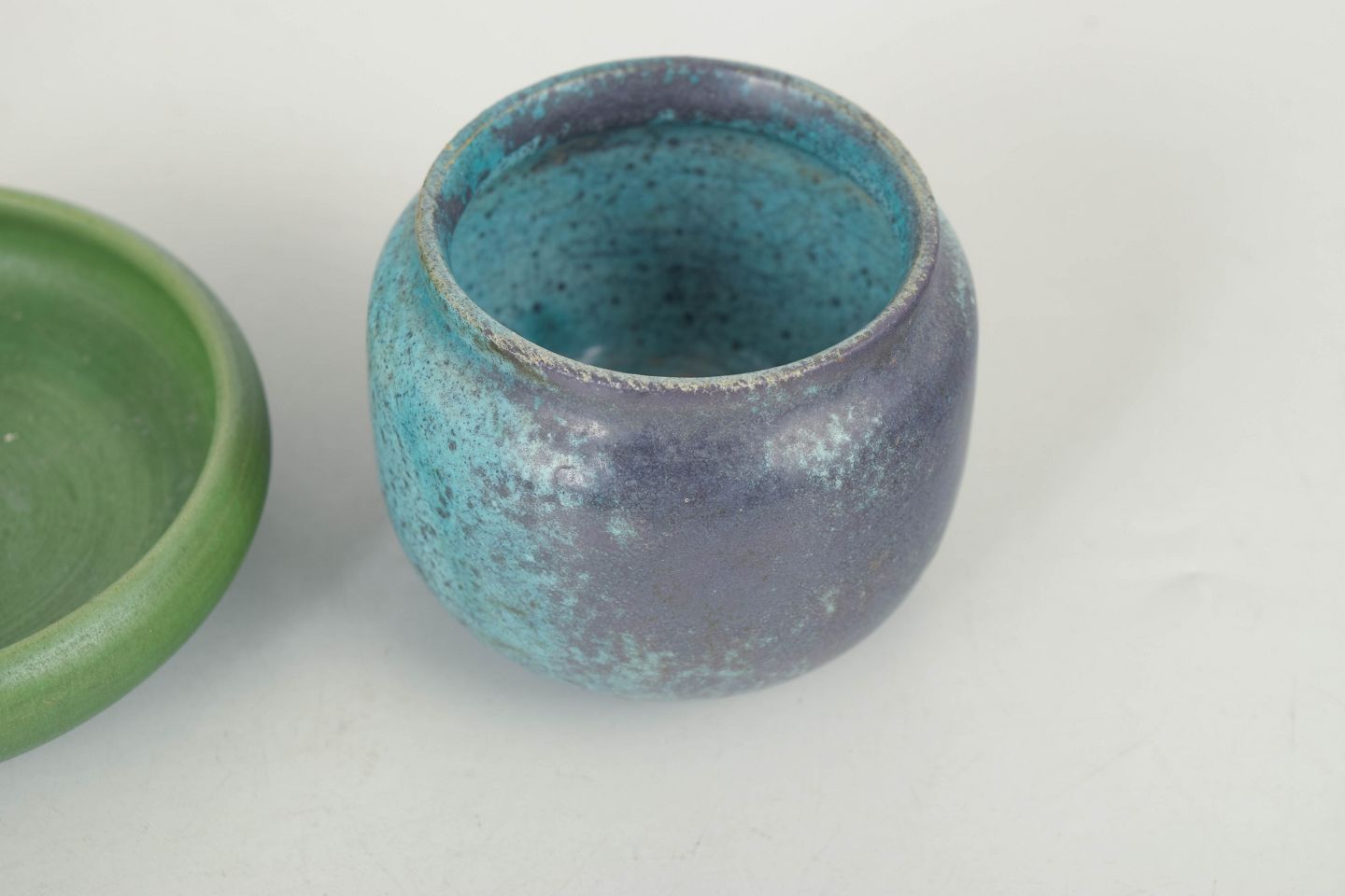 Dimensioner: Fad: H. 3 cm, D. 9 cm. Vase: H. 5 cm, D. 7 cm.