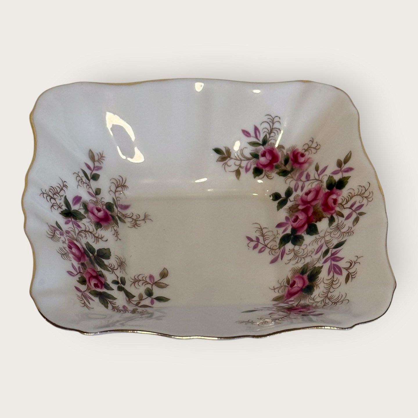 Royal Albert, Bone China, Lavender Rose, Lille firkantet skål 12x12cm, 3cm høj *Perfekt stand*
