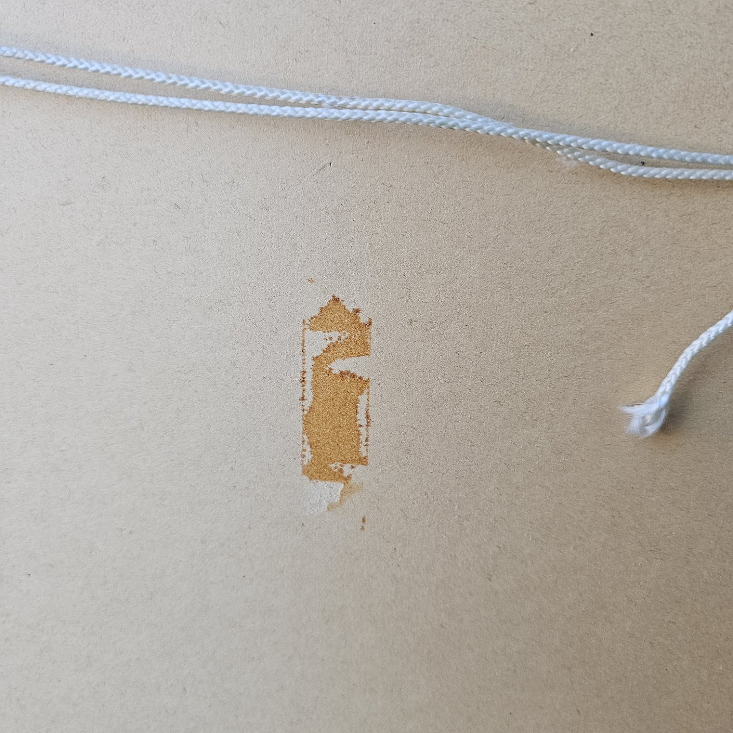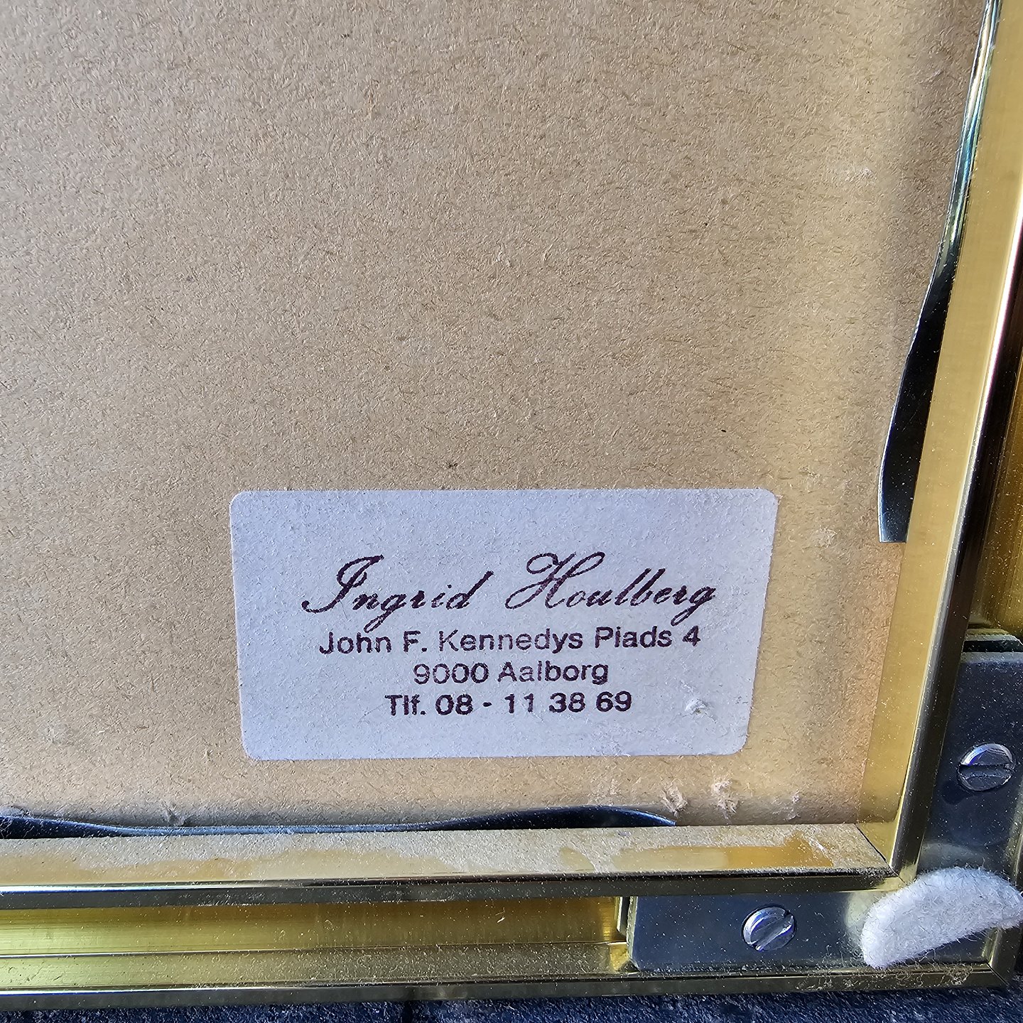 Tryk på papir med motiv af en kvinde i grønne nuancer. Monteret i metalramme, dateret 1981