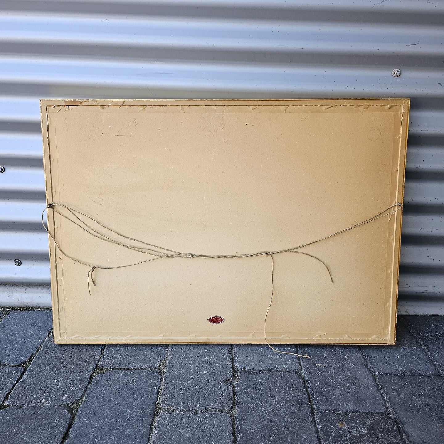 Litografi med motiv af et skur i et landskab monteret i guldmalet træramme. Nr. 63/125 og dateret 1960