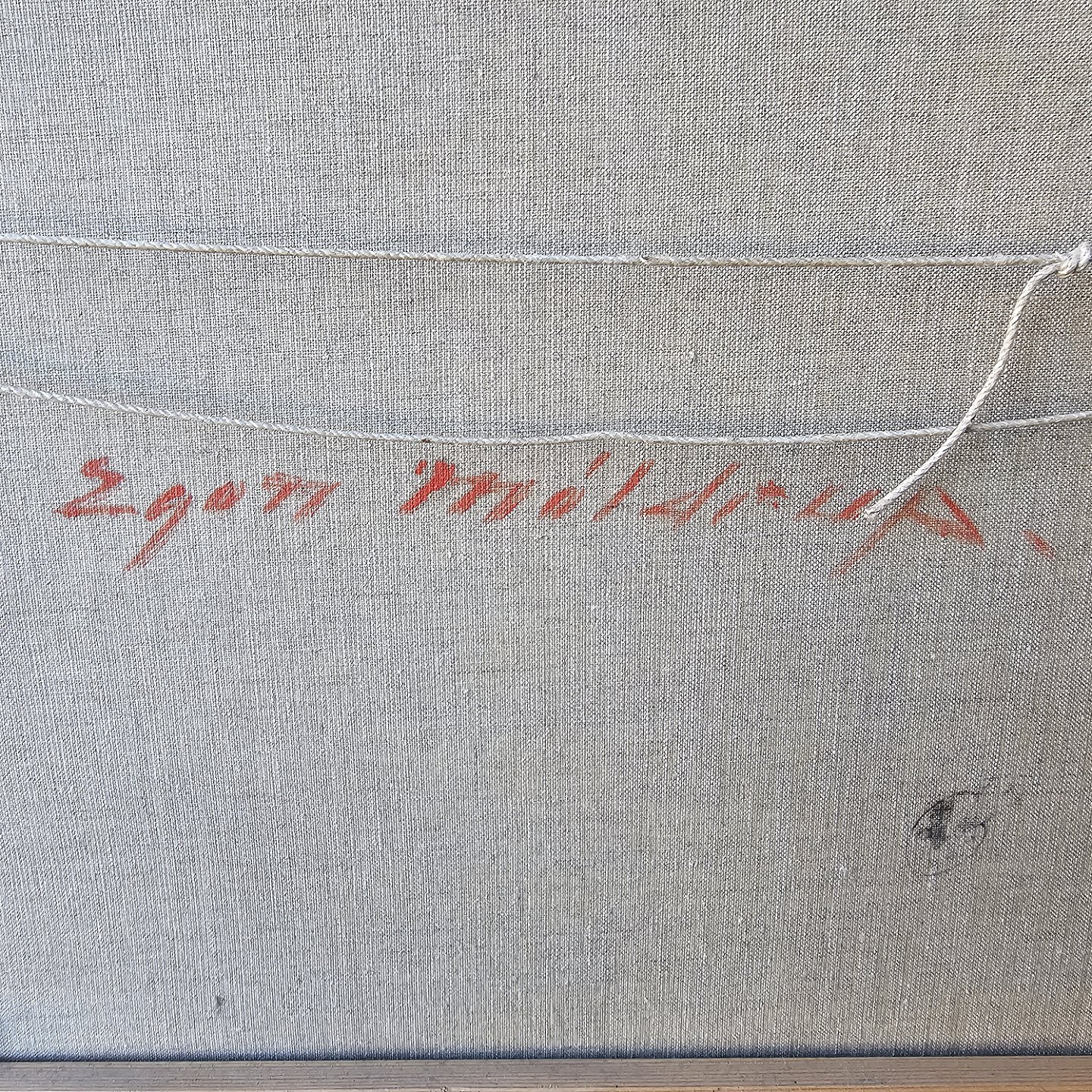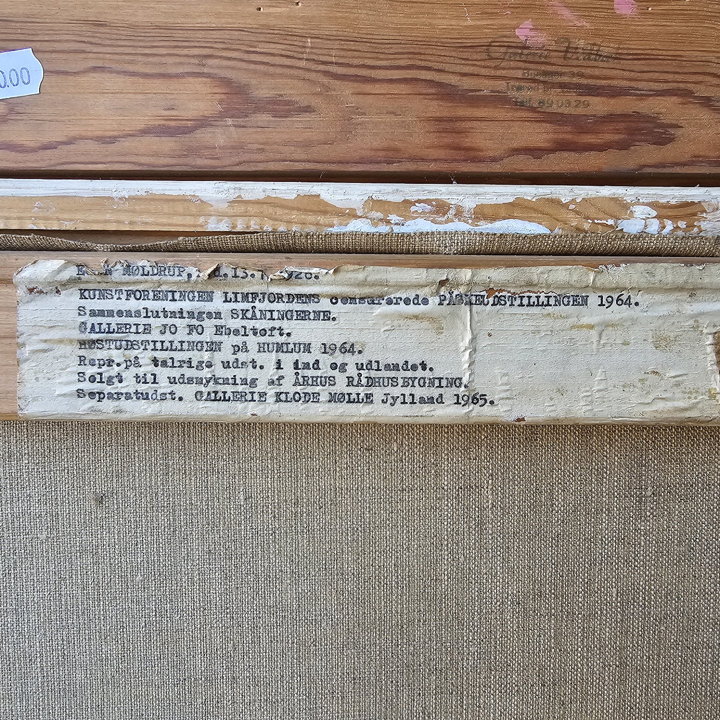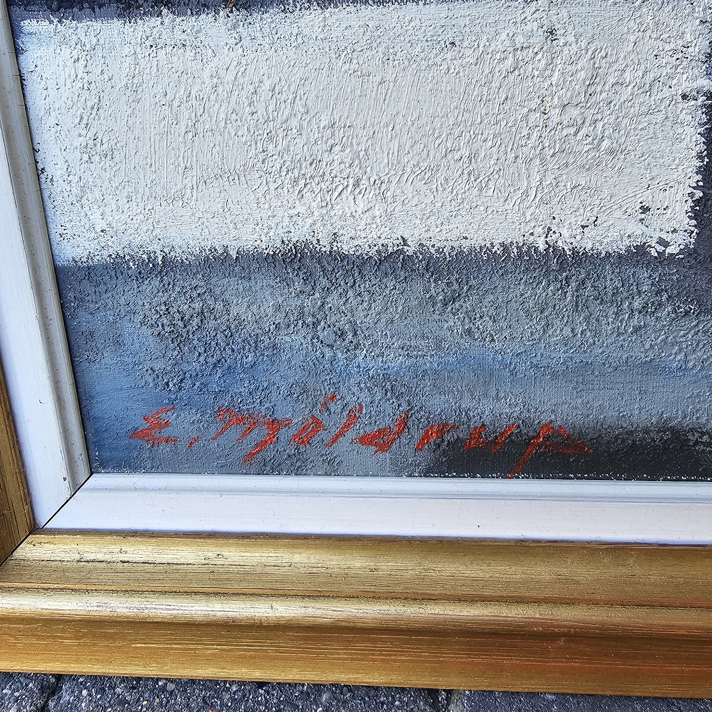 Oliemaleri på lærred monteret i guldmalet ramme med motiv af en lille landsby