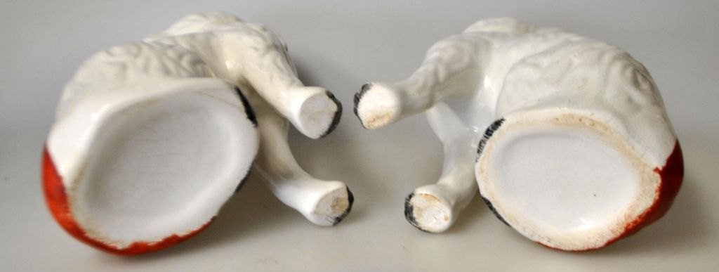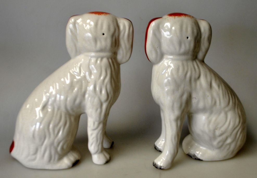 Par Staffordshire hunde, 19. årh. England. Med håndbemalinger. H.: 15,5 cm.