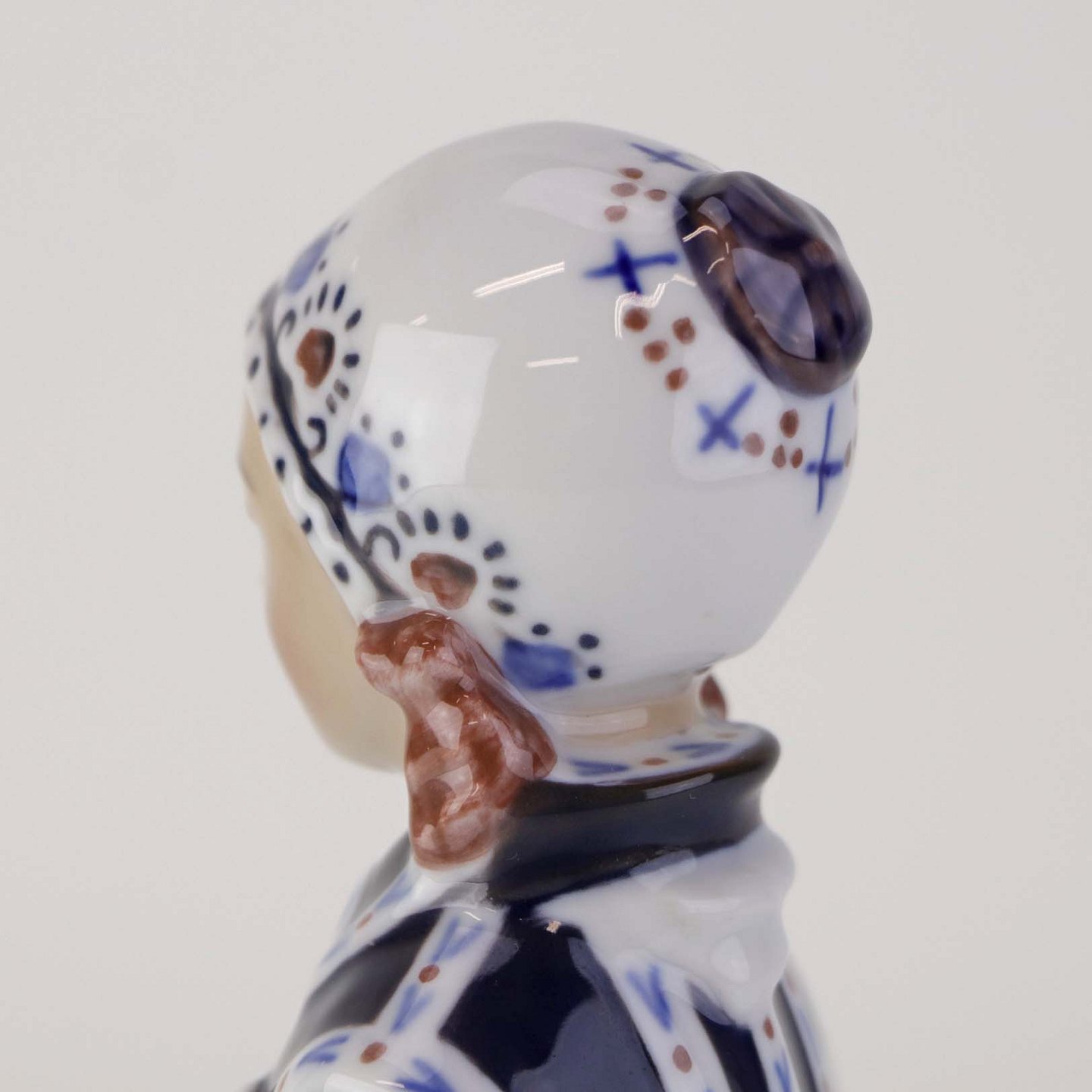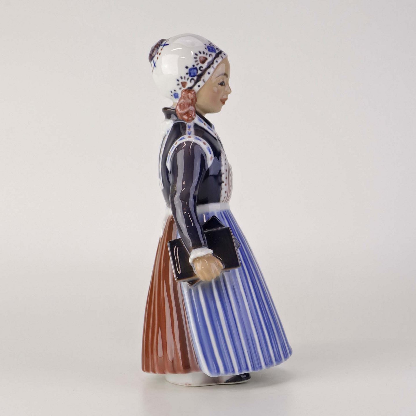 Figur i porcelæn med motiv af skolepige fra Skåne. Nr. 1378