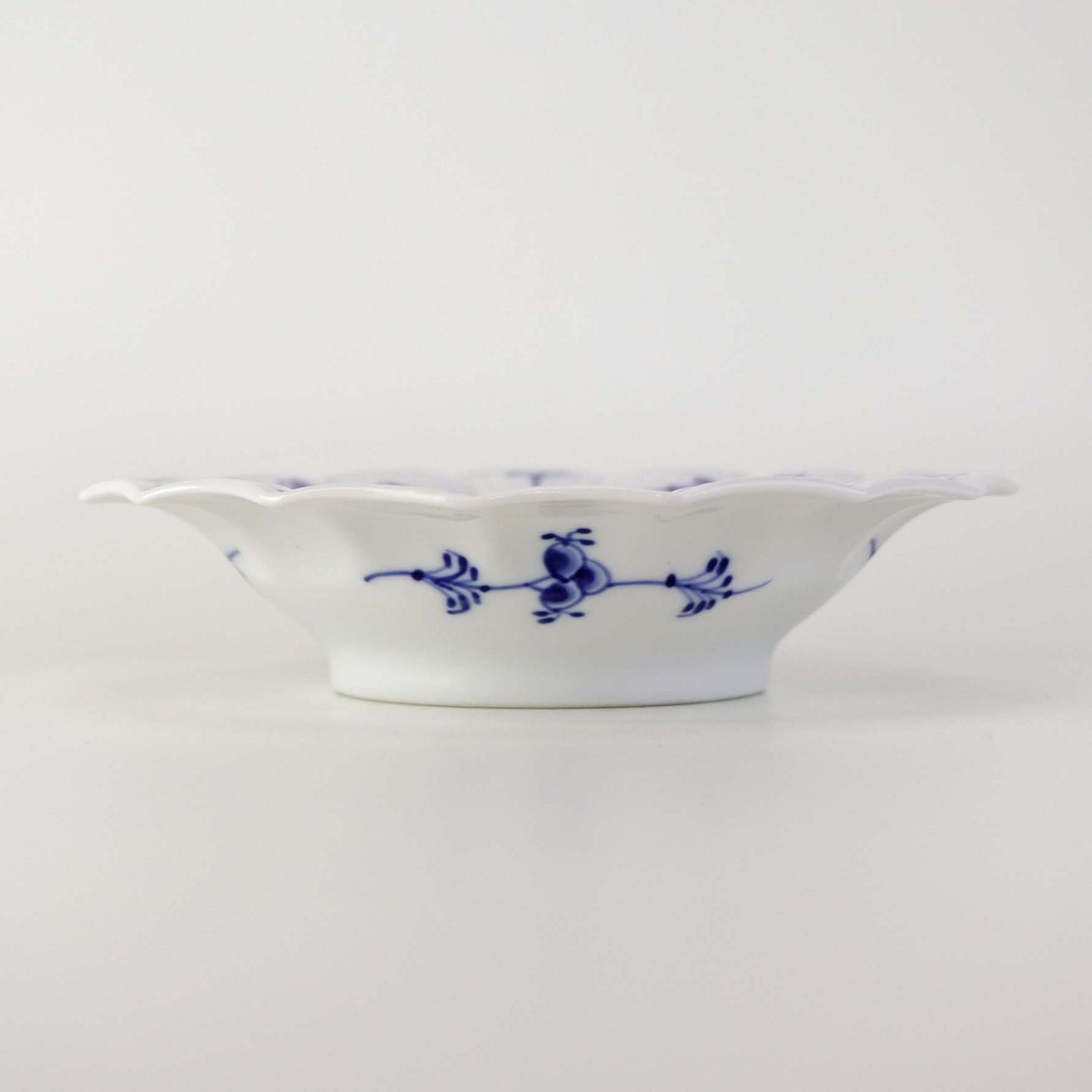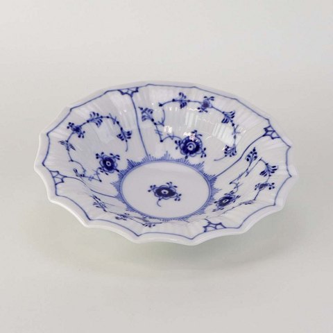 Kantet skål i kongeligt porcelæn fra stellet Musselmalet riflet.