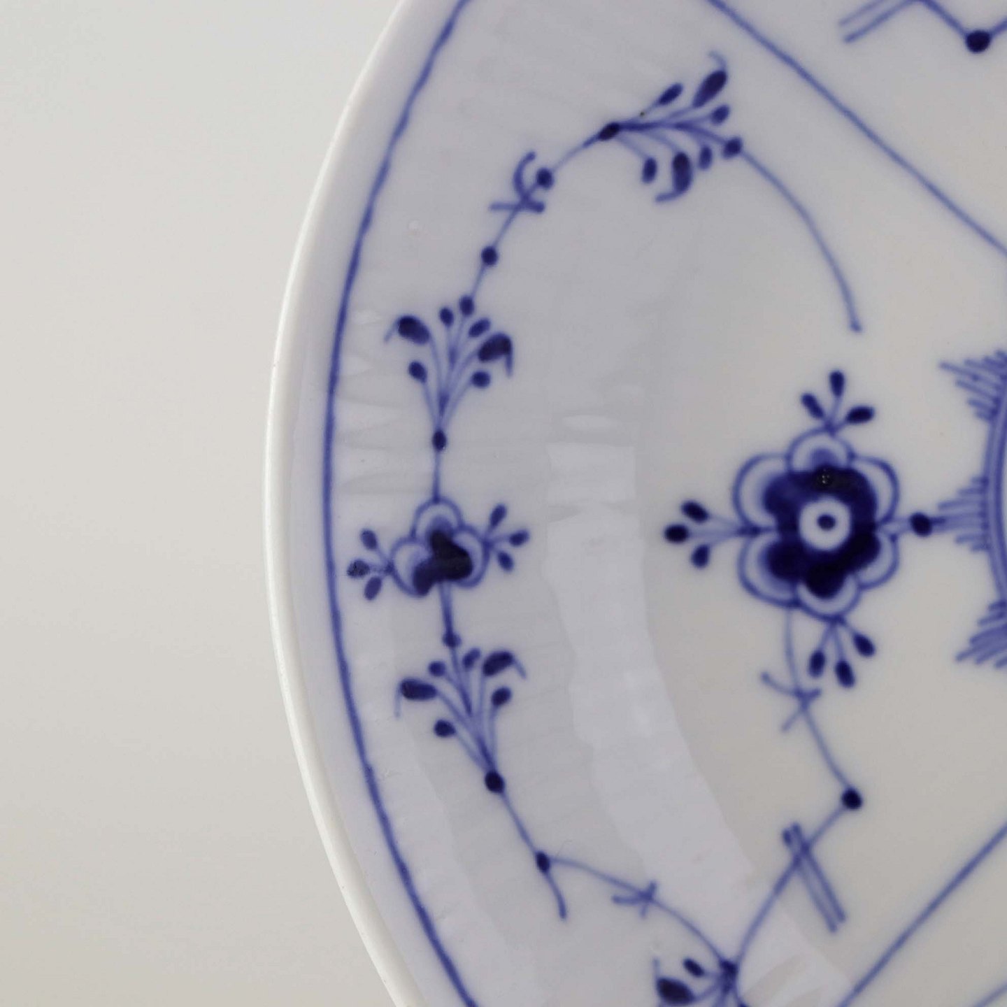 Skål til østers i kongeligt porcelæn fra stellet Musselmalet riflet.