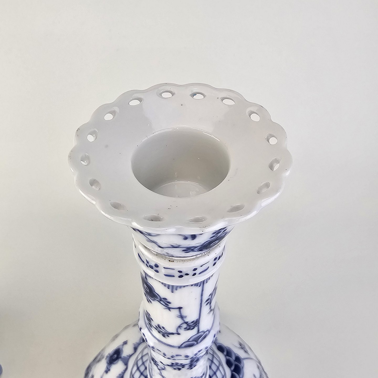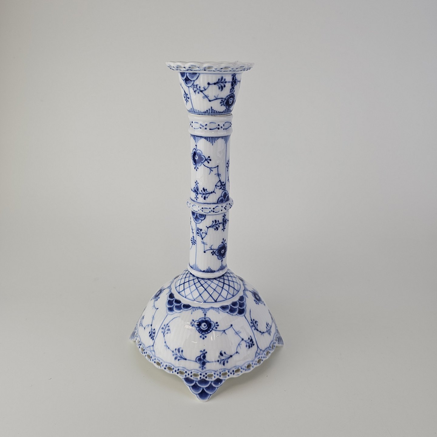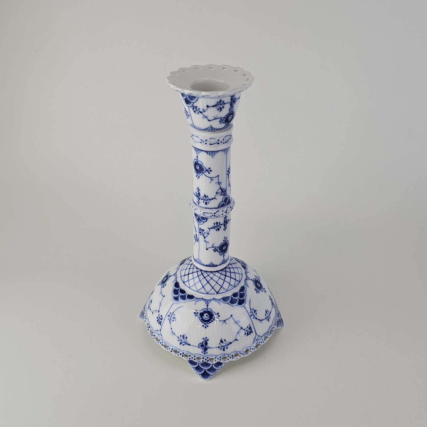 Sæt af to lysestager i kongeligt porcelæn fra stellet Musselmalet Helblonde. Nr. 1/1008